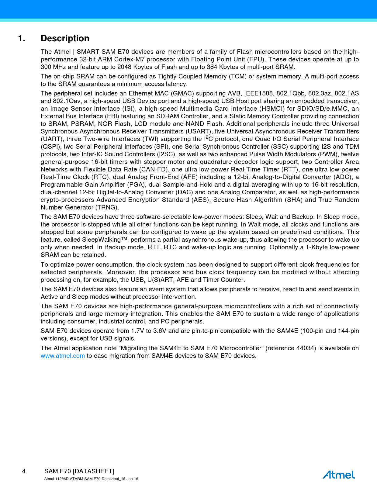 Datasheet SAM E70 (Microchip) - 4