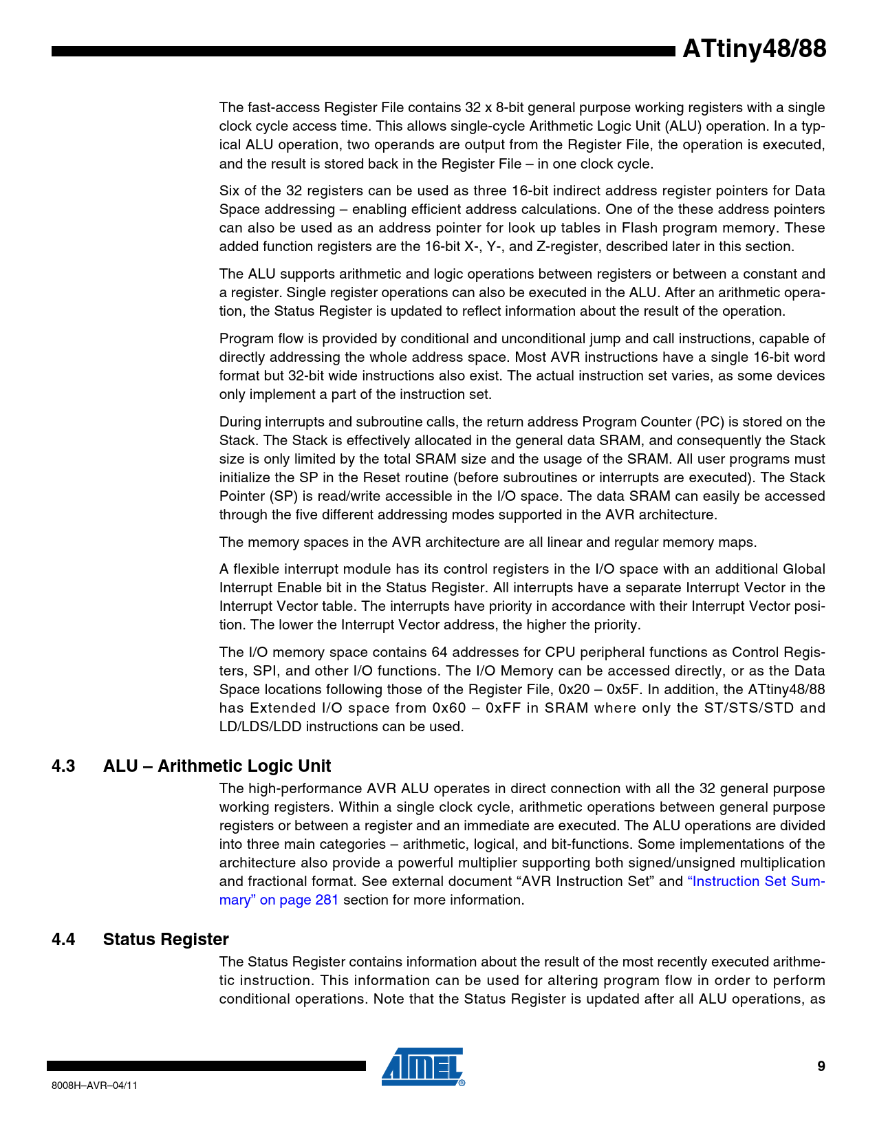 ATtiny48/88. 4.3. ALU – Arithmetic Logic Unit. 4.4. Status Register