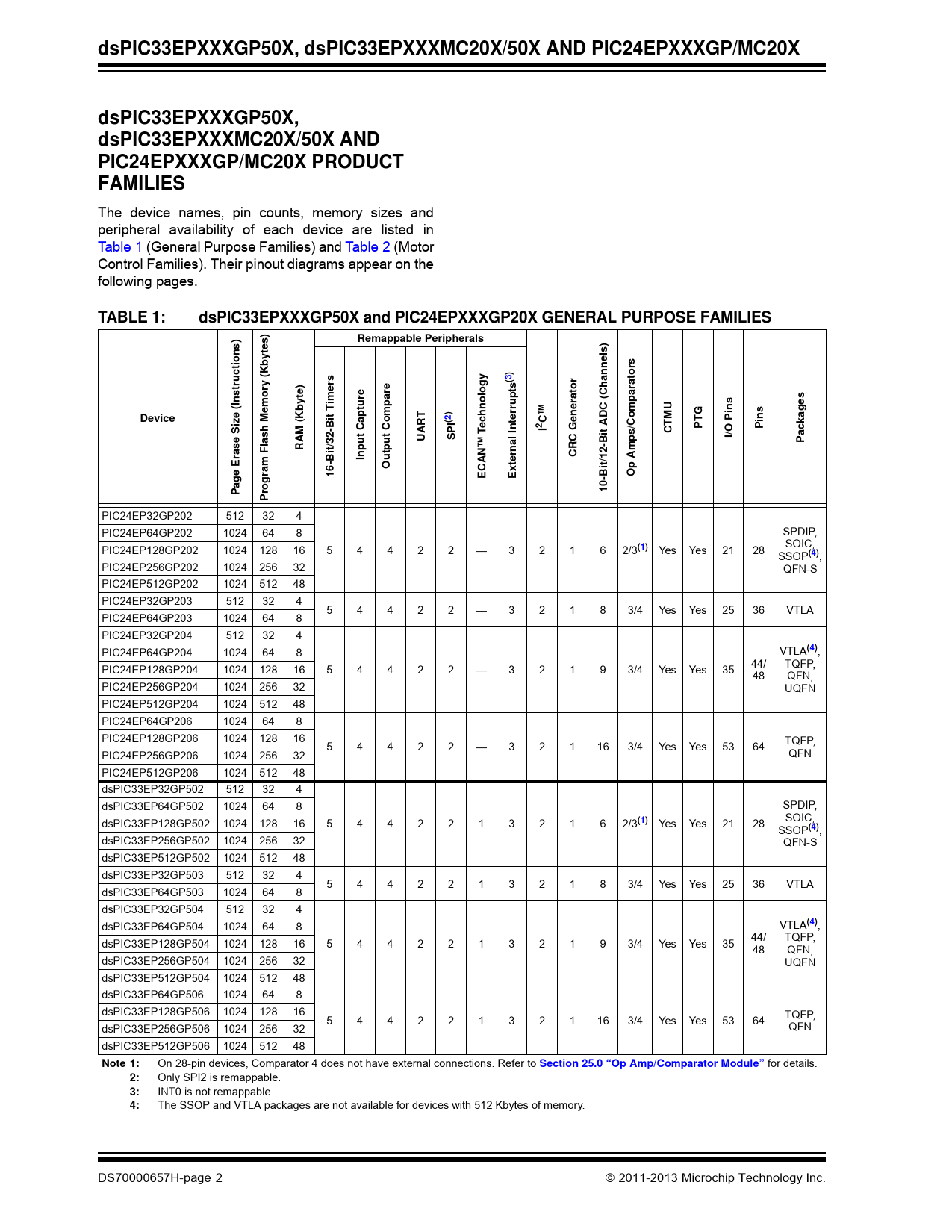 Datasheet dsPIC33EPXXXGP50X, dsPIC33EPXXXMC20X/50X, PIC24EPXXXGP/MC20X (Microchip) - 2