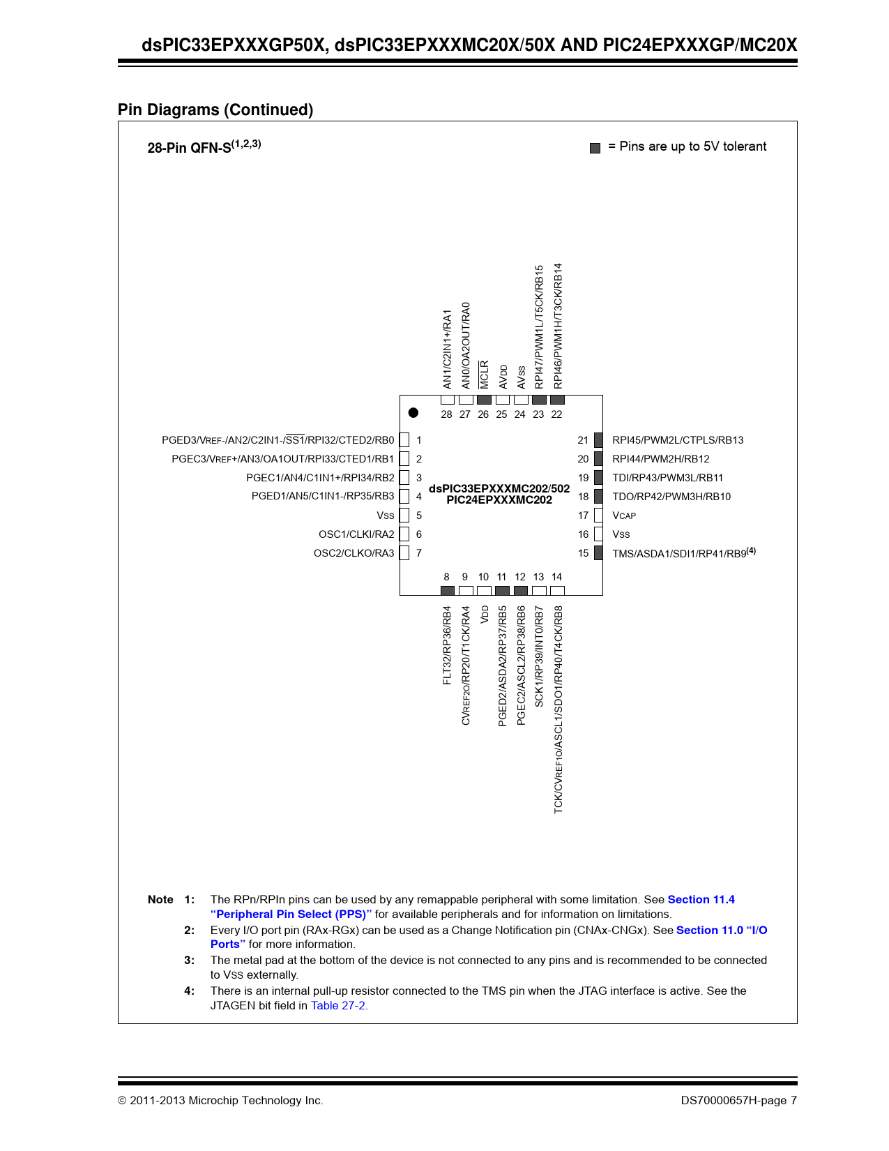 dsPIC33EPXXXGP50X, dsPIC33EPXXXMC20X/50X AND PIC24EPXXXGP/MC20X Pin Diagrams (Continued) 28-Pin QFN-S(1,2,3)