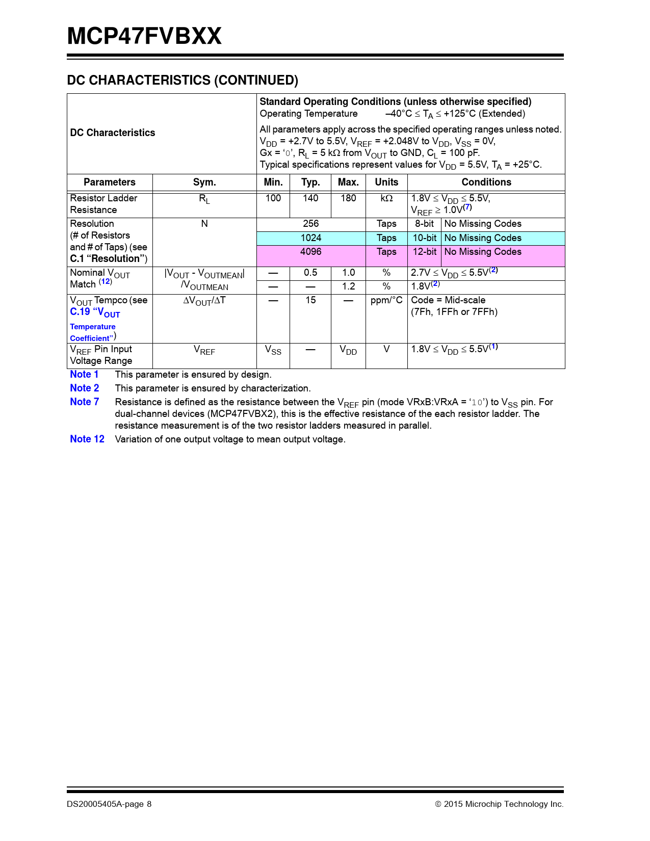 | Pages / Page | 92 / 8 — MCP47FVBXX. DC CHARACTERISTICS (CONTINUED). Standard Operating Conditions … |