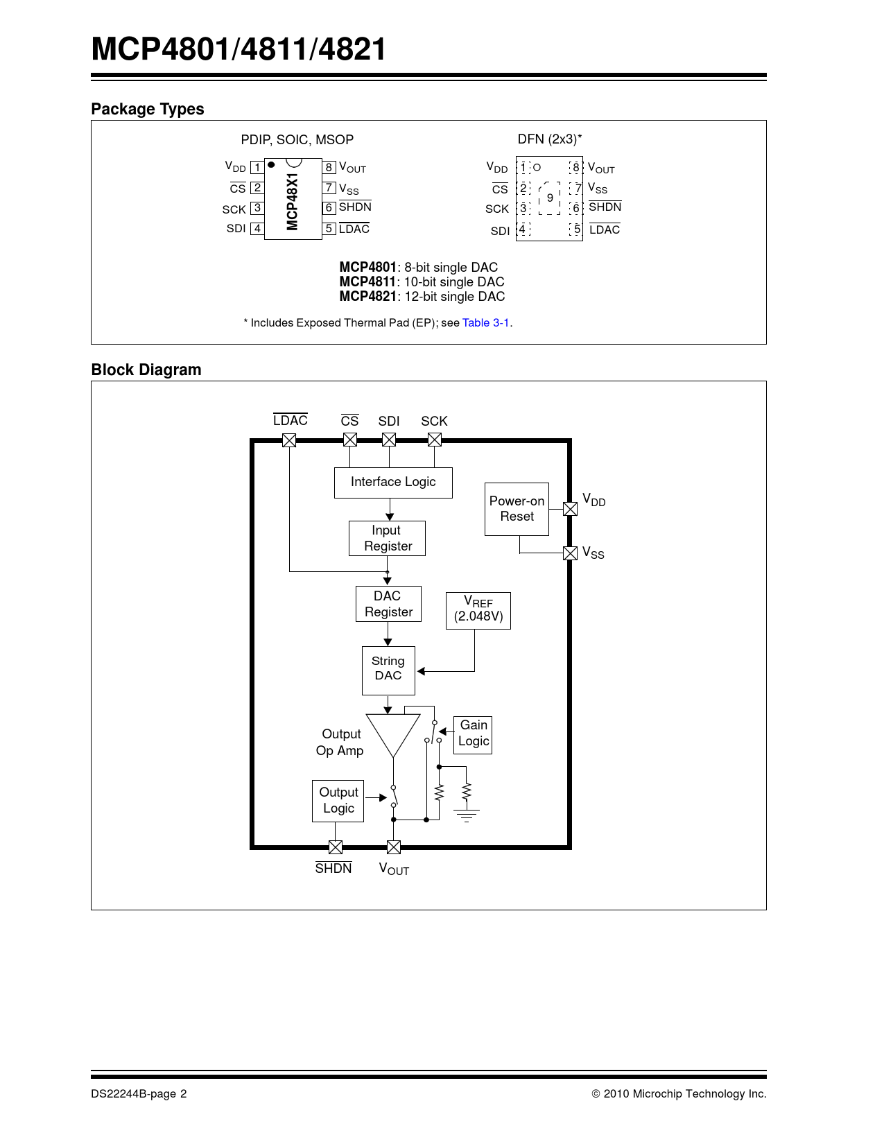Pages / Page48 / 2 — MCP4801/4811/4821. Package Types. P48X1. MCP4801. MCP4811. MCP4821. Block …