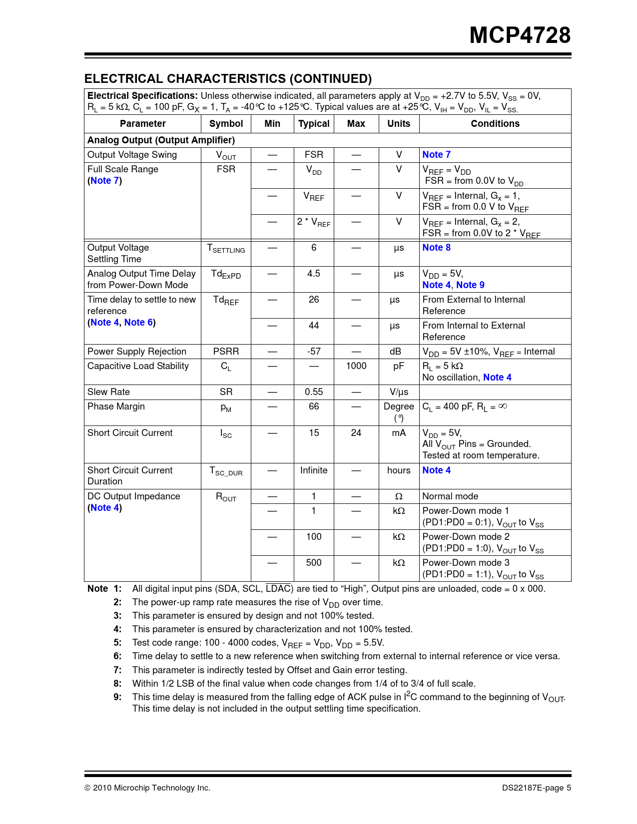 MCP4728 ELECTRICAL CHARACTERISTICS (CONTINUED) Electrical Specifications: