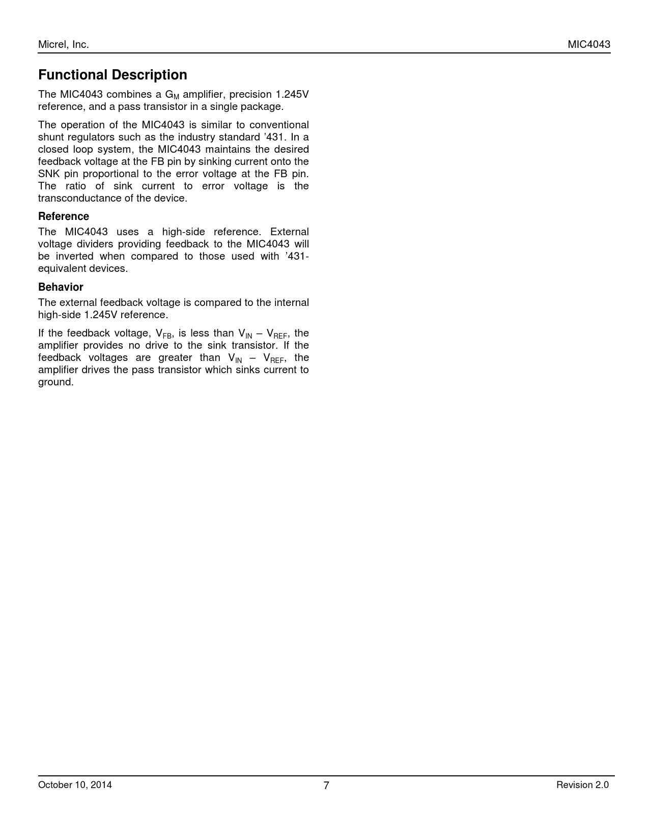 Micrel, Inc. MIC4043 Functional Description