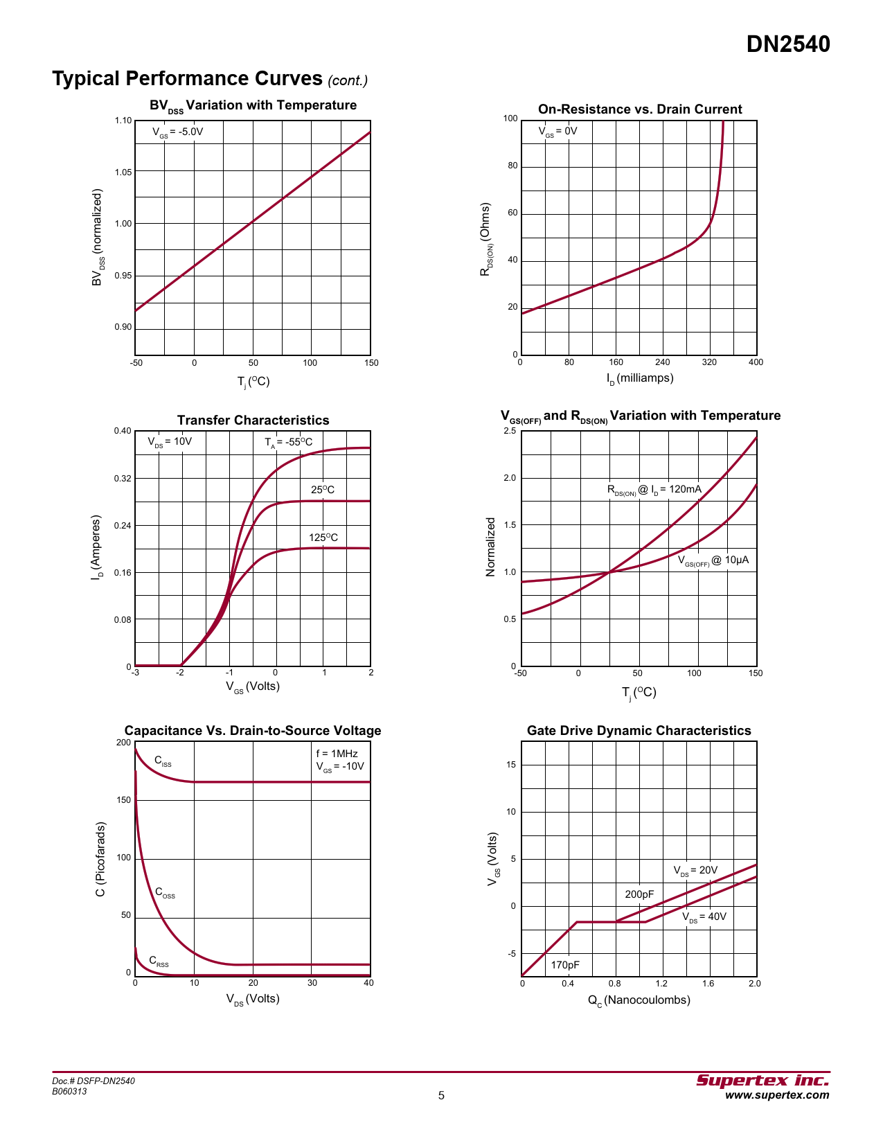 DN2540. Typical Performance Curves. BV Variation with Temperature. DSS. On-Resistance vs. Drain Current. Transfer Characteristics