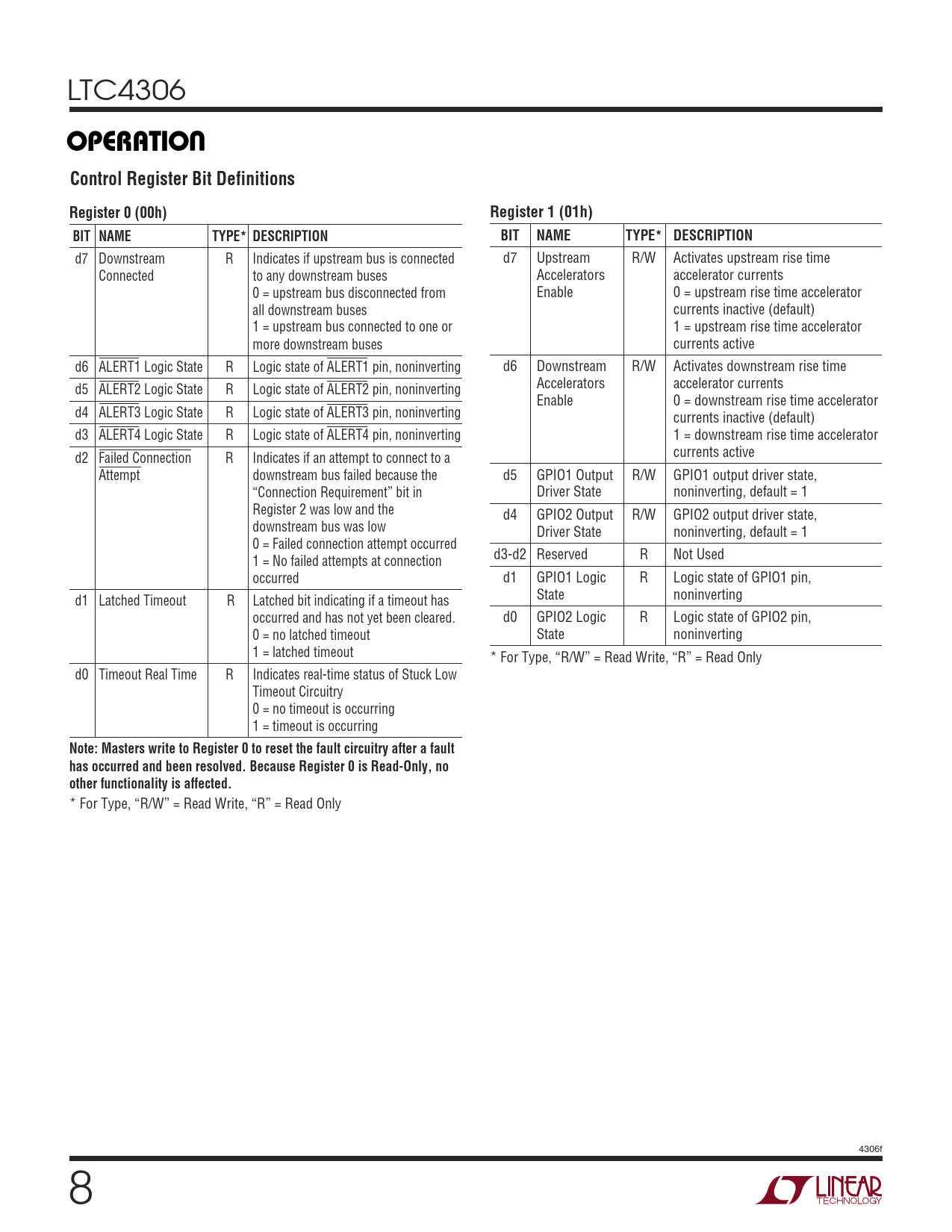 * For Type, “R/W” = Read Write, “R” = Read Only 4306f 8