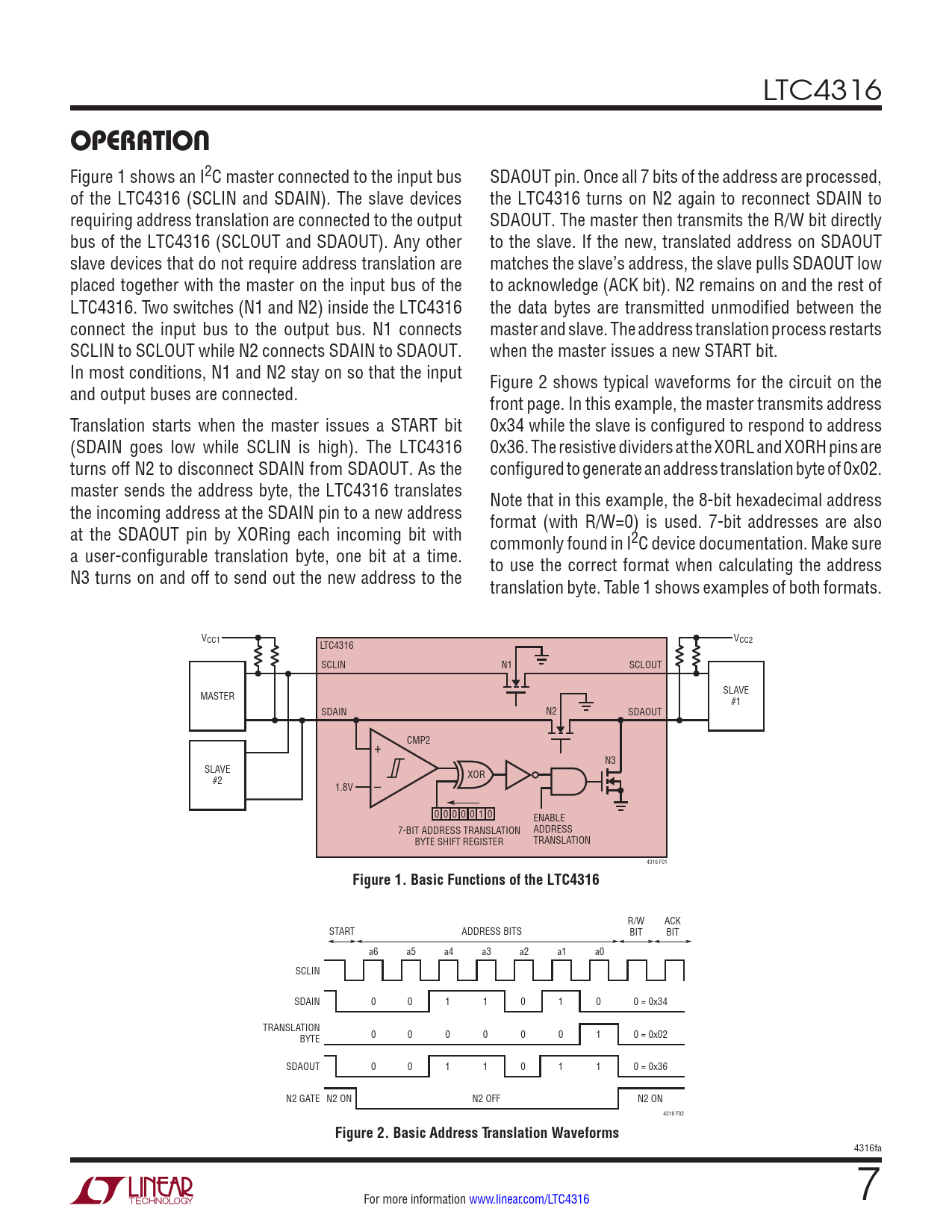 OPERATION Figure 1 Basic Functions of the LTC4316 Figure 2 Basic Address Translation Waveforms