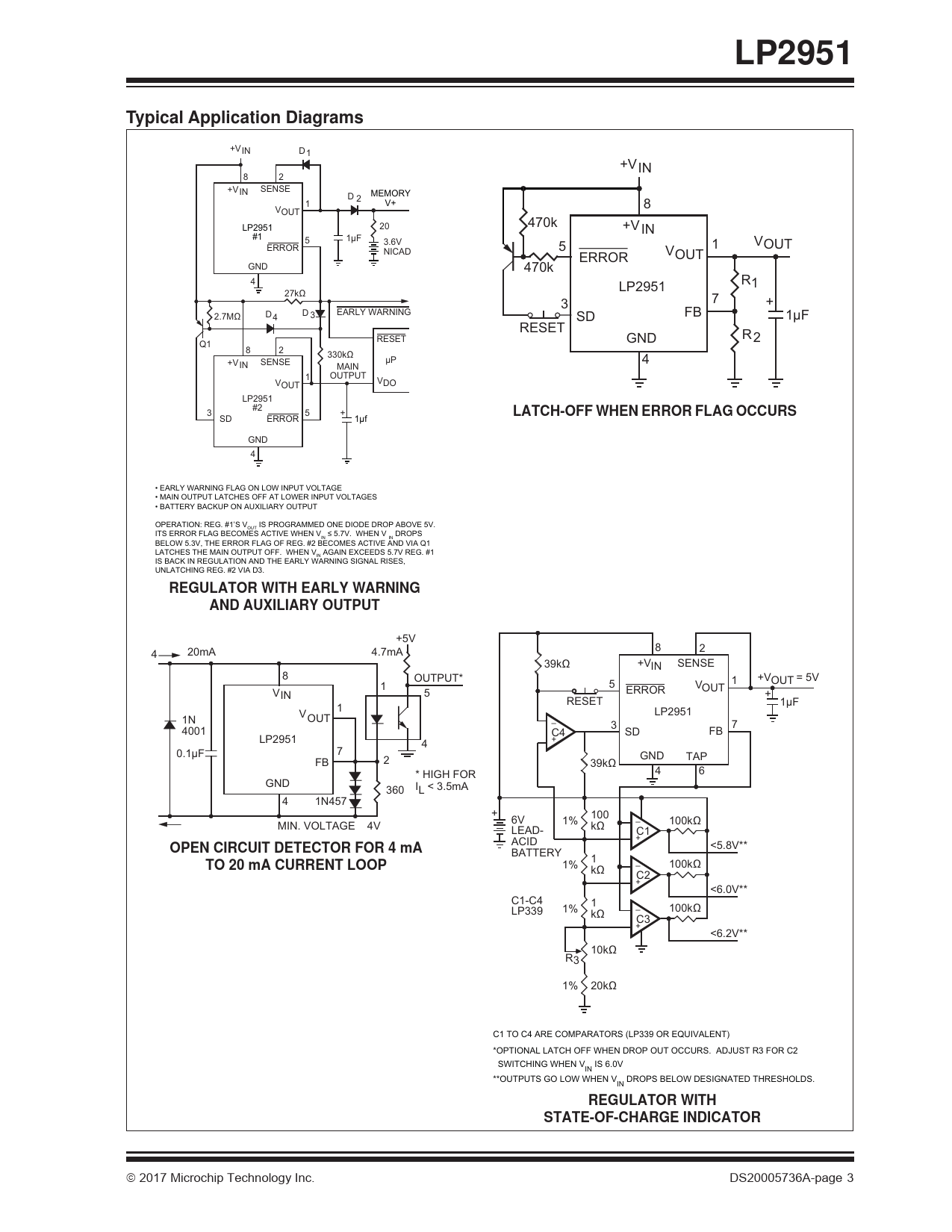 LP2951. Typical Application Diagrams. +V IN D1 +V IN 2. SENSE 8. +V IN VOUT D2 1 MEMORY. V+ 8. 470k 20 LP2951. ERROR 1μF 3.6V