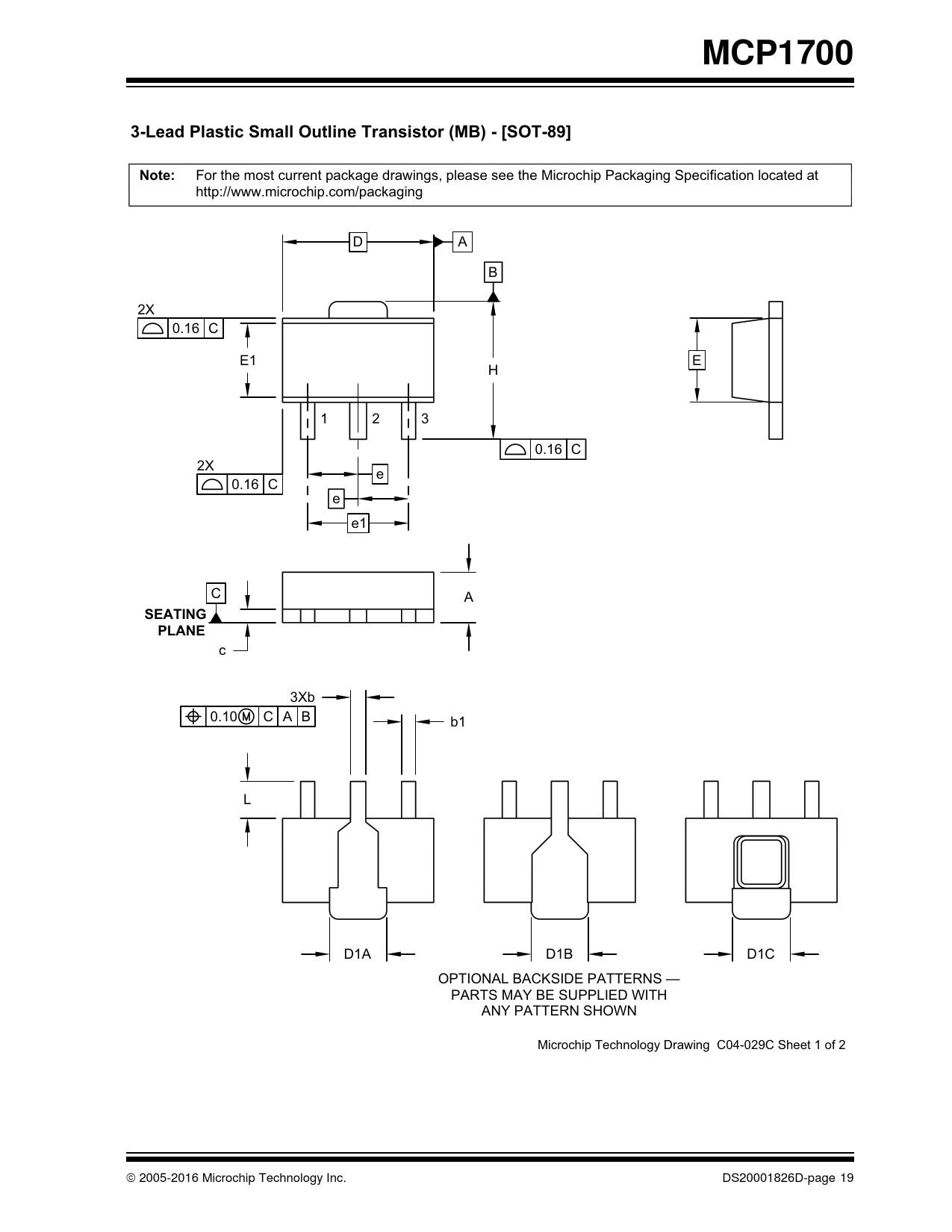 | Pages / Page | 30 / 19 — MCP1700. 3-Lead Plastic Small Outline Transistor (MB) -[SOT-89] |