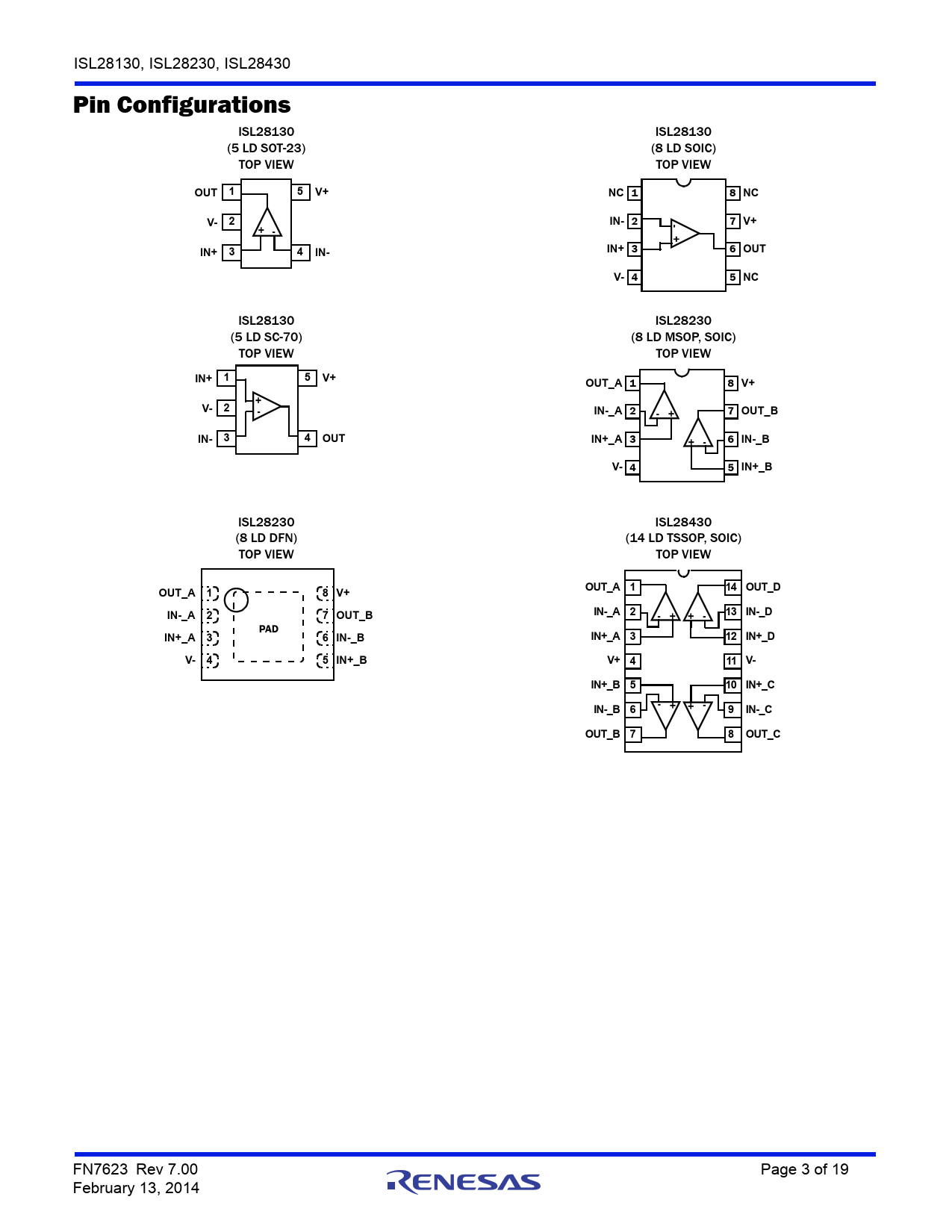 ISL28230 ISL28430 (8 LD DFN) (14 LD TSSOP, SOIC) TOP VIEW TOP VIEW
