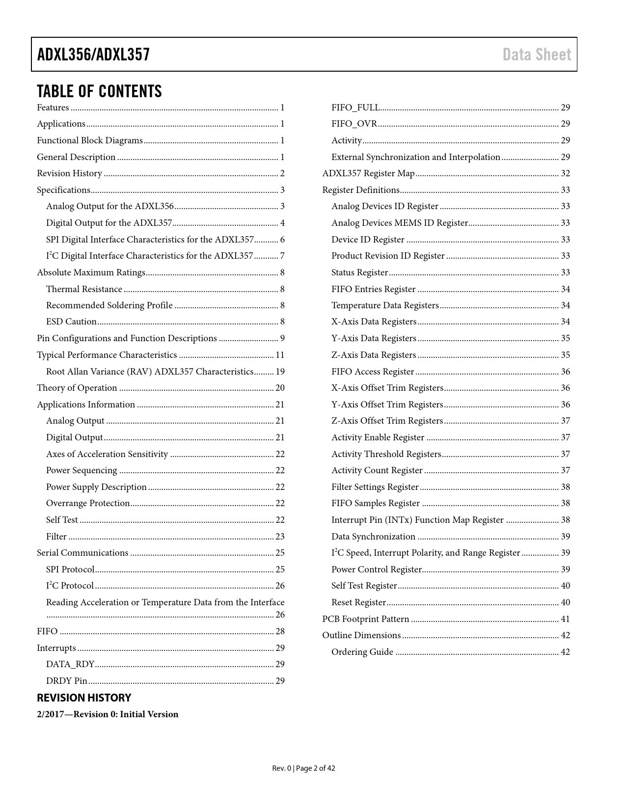 Pages / Page42 / 2 — ADXL356/ADXL357. Data Sheet. TABLE OF CONTENTS. REVISION HISTORY …