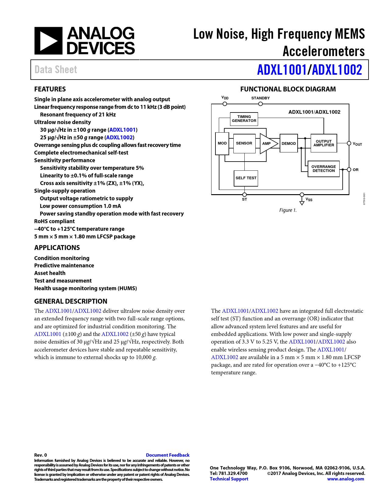 Datasheet ADXL1001, ADXL1002 (Analog Devices)