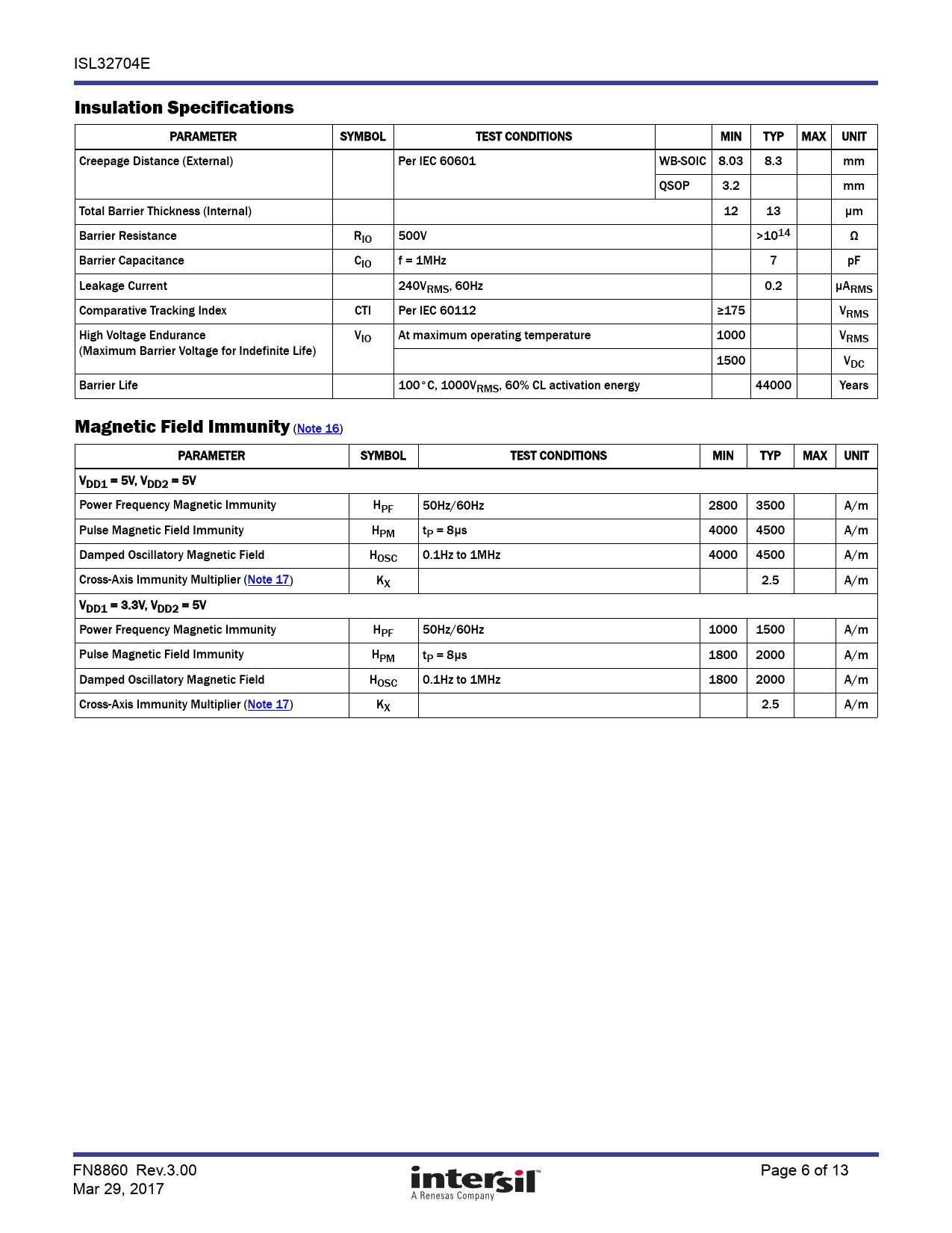 link. to. page. 5. link. to. page. 5. link. to. page. 5. ISL32704E. Insulation. Specifications. PARAMETER. SYMBOL. TEST. CONDITIONS. MIN. TYP. MAX. UNIT. Creepage