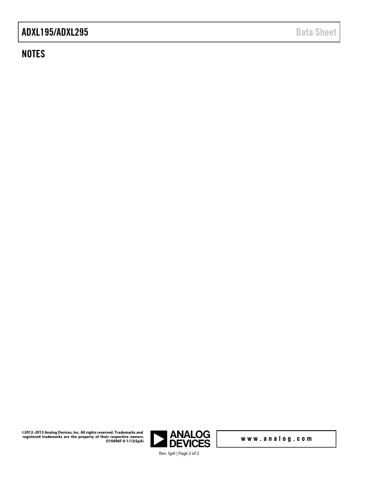 | Pages / Page | 2 / 2 — ADXL195/ADXL295. Data Sheet. NOTES. ©2012–2013 Analog Devices, Inc. A |