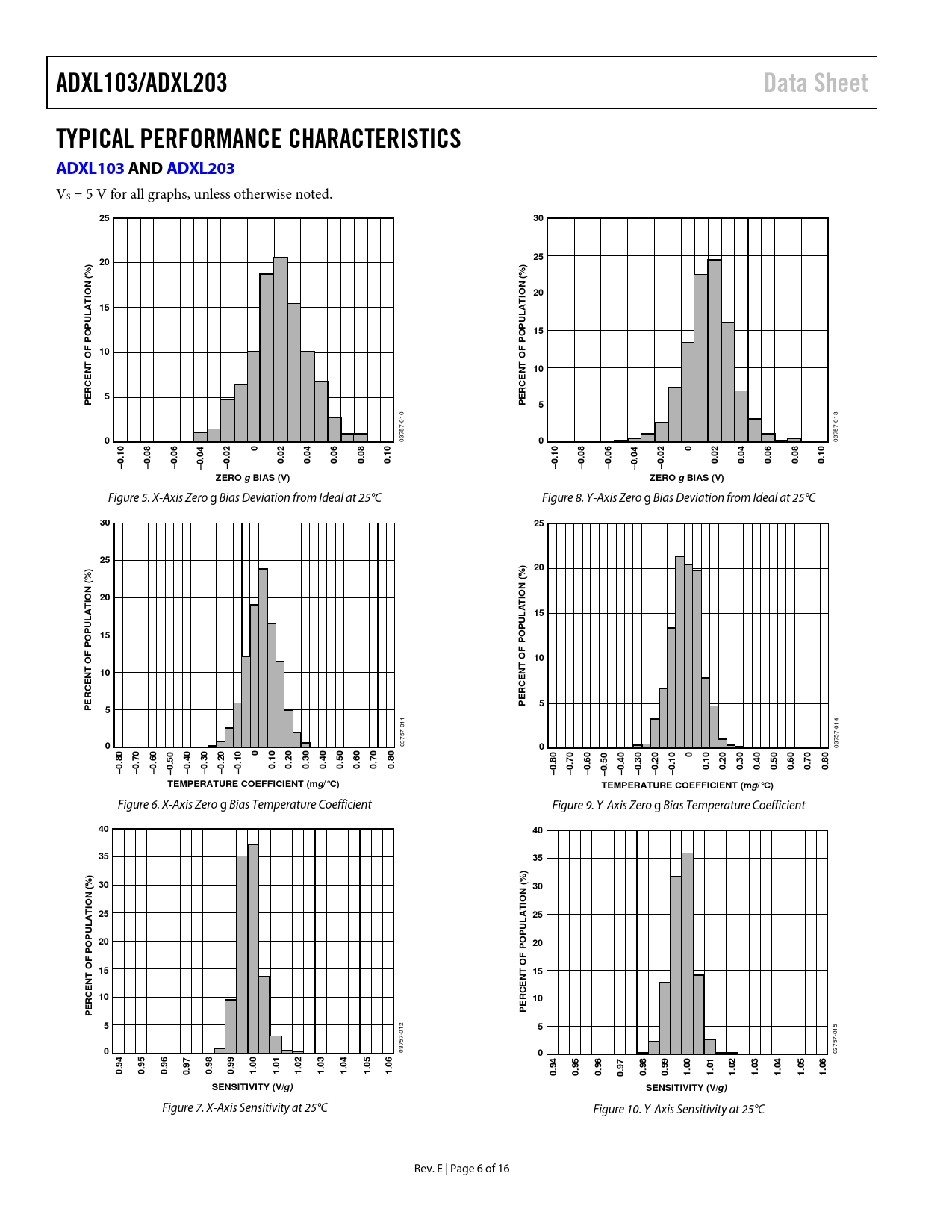 Pages / Page16 / 6 — ADXL103/ADXL203. Data Sheet. TYPICAL PERFORMANCE CHARACTERISTICS ADXL103 …