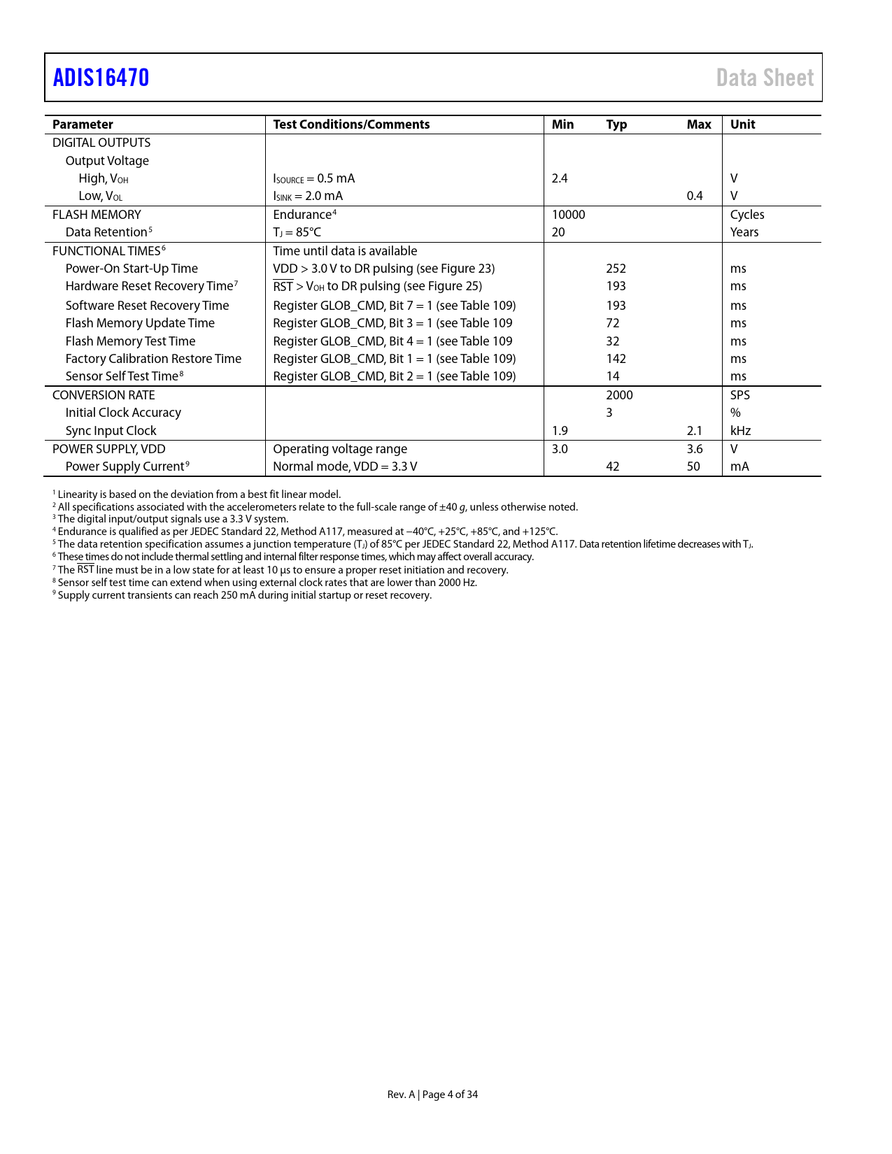 Pages / Page35 / 5 — ADIS16470. Data Sheet. Parameter. Test Conditions/Comments. Min. Typ. …