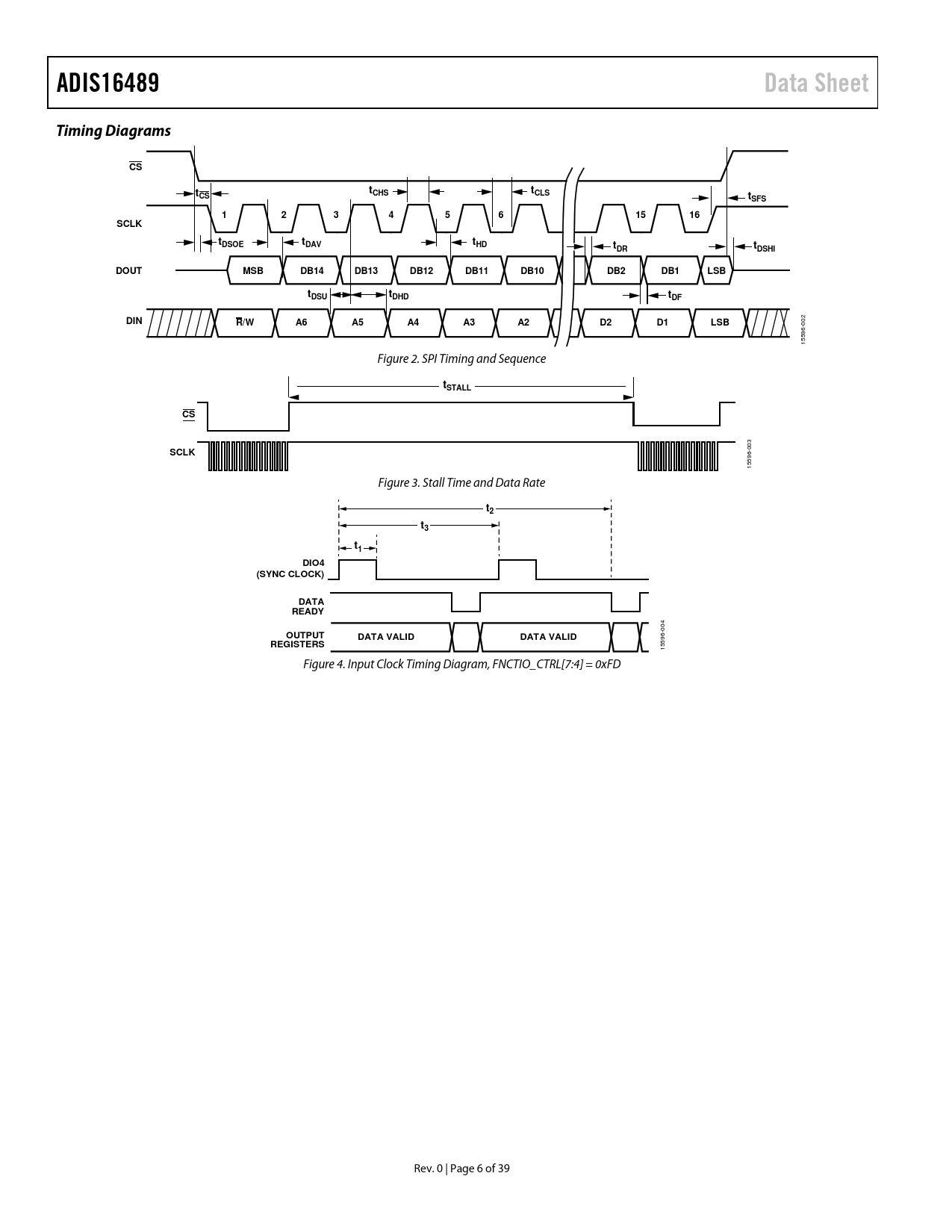 | Pages / Page | 40 / 7 — ADIS16489. Data Sheet. Timing Diagrams. CHS. tCLS. tSFS. SCLK. DSOE. DAV. … |