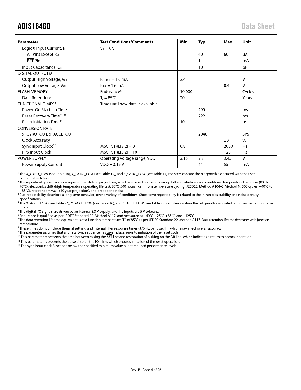 ADIS16460 Data Sheet Parameter Test Conditions/Comments Min Typ Max Unit