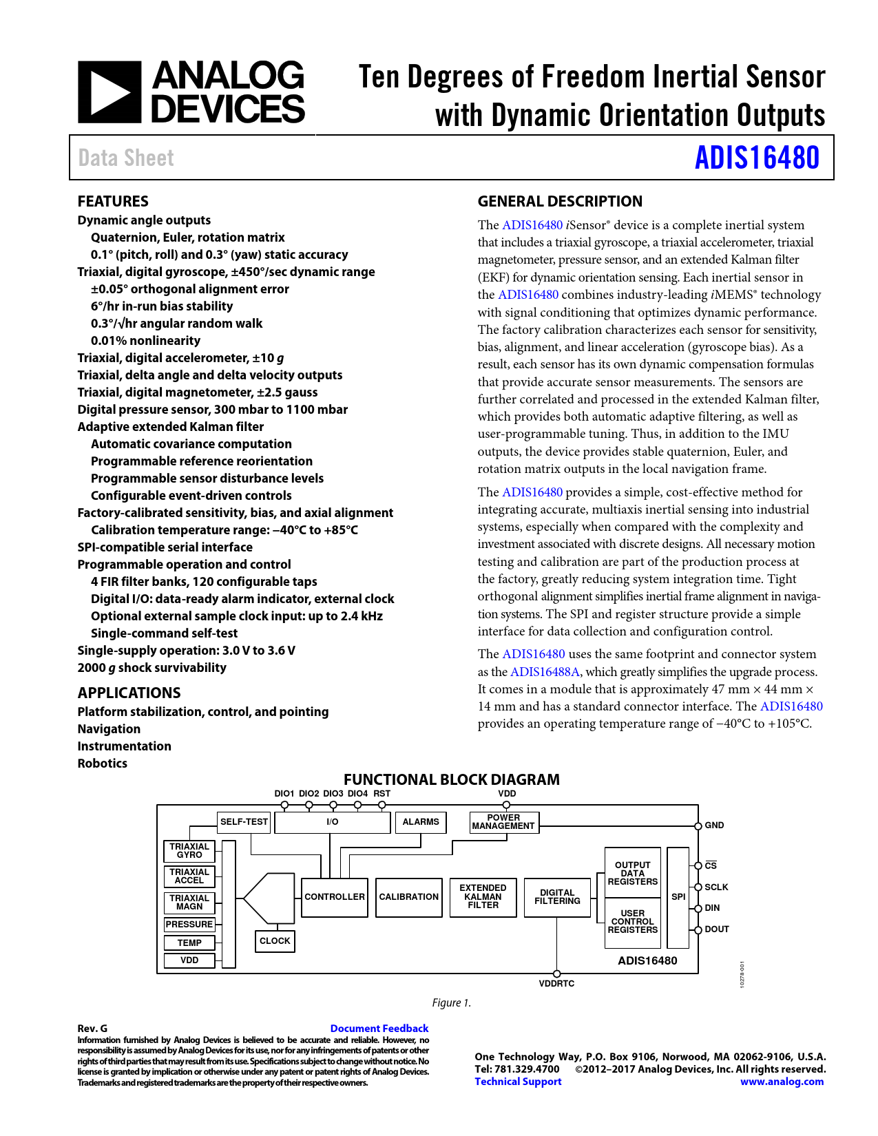 The ADIS16480 iSensor® device is a complete inertial system