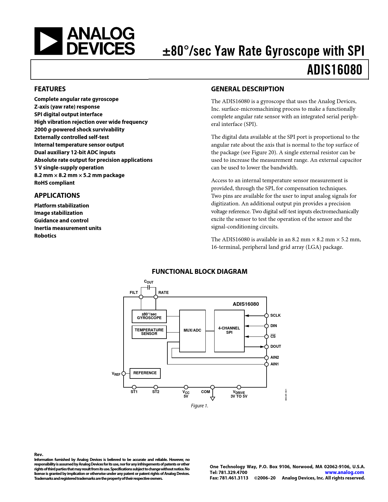 | Pages / Page | 17 / 1 — ±80°/sec Yaw Rate Gyroscope with SPI. ADIS16080. FEATURES. GENERAL … |