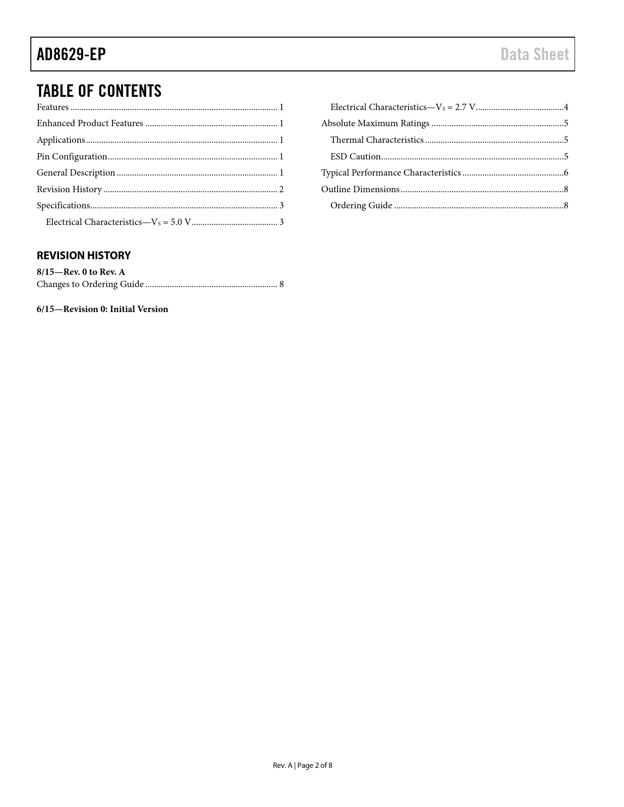 Pages / Page8 / 2 — AD8629-EP. Data Sheet. TABLE OF CONTENTS. REVISION HISTORY 8/15—Rev. 0 to …