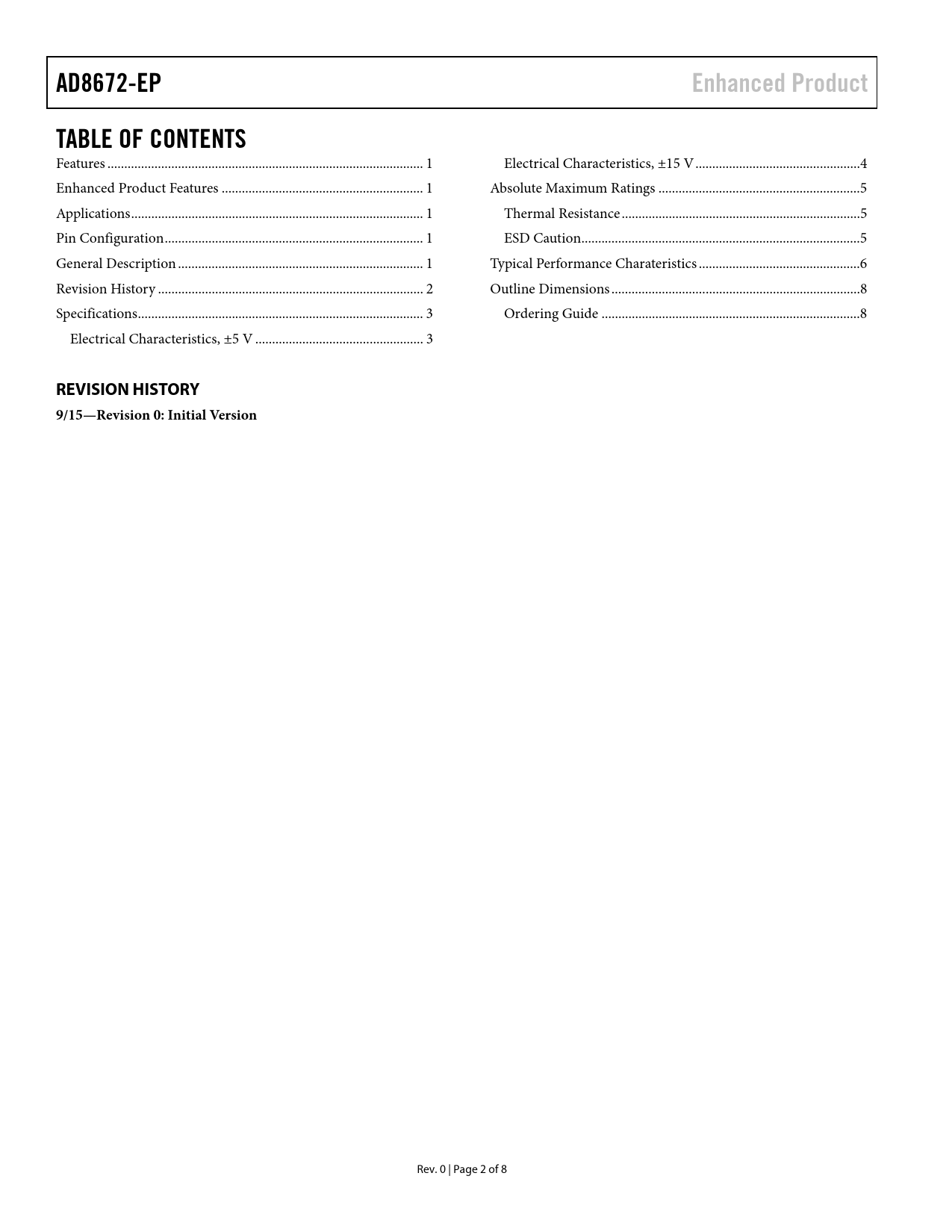 Pages / Page8 / 2 — AD8672-EP. Enhanced Product. TABLE OF CONTENTS. REVISION HISTORY. …