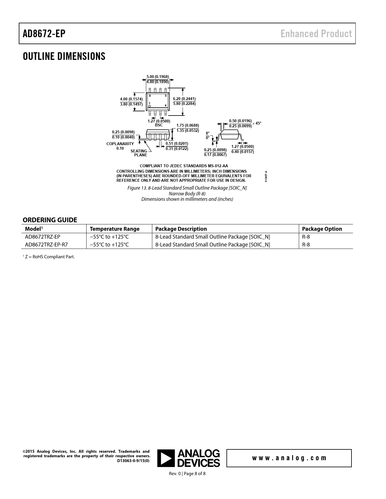| Pages / Page | 8 / 8 — AD8672-EP. Enhanced Product. OUTLINE DIMENSIONS. 5.00 (0.1968) 4.80 … |