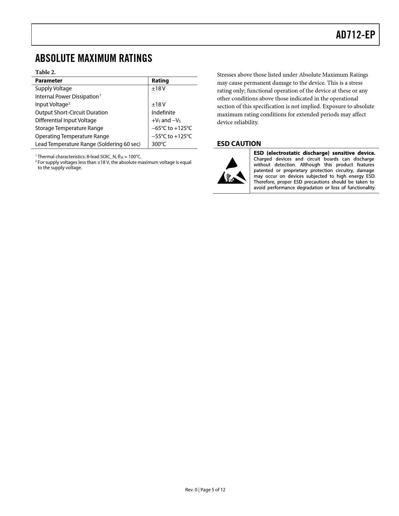 Pages / Page12 / 5 — Table 2. Parameter Rating. ESD CAUTION