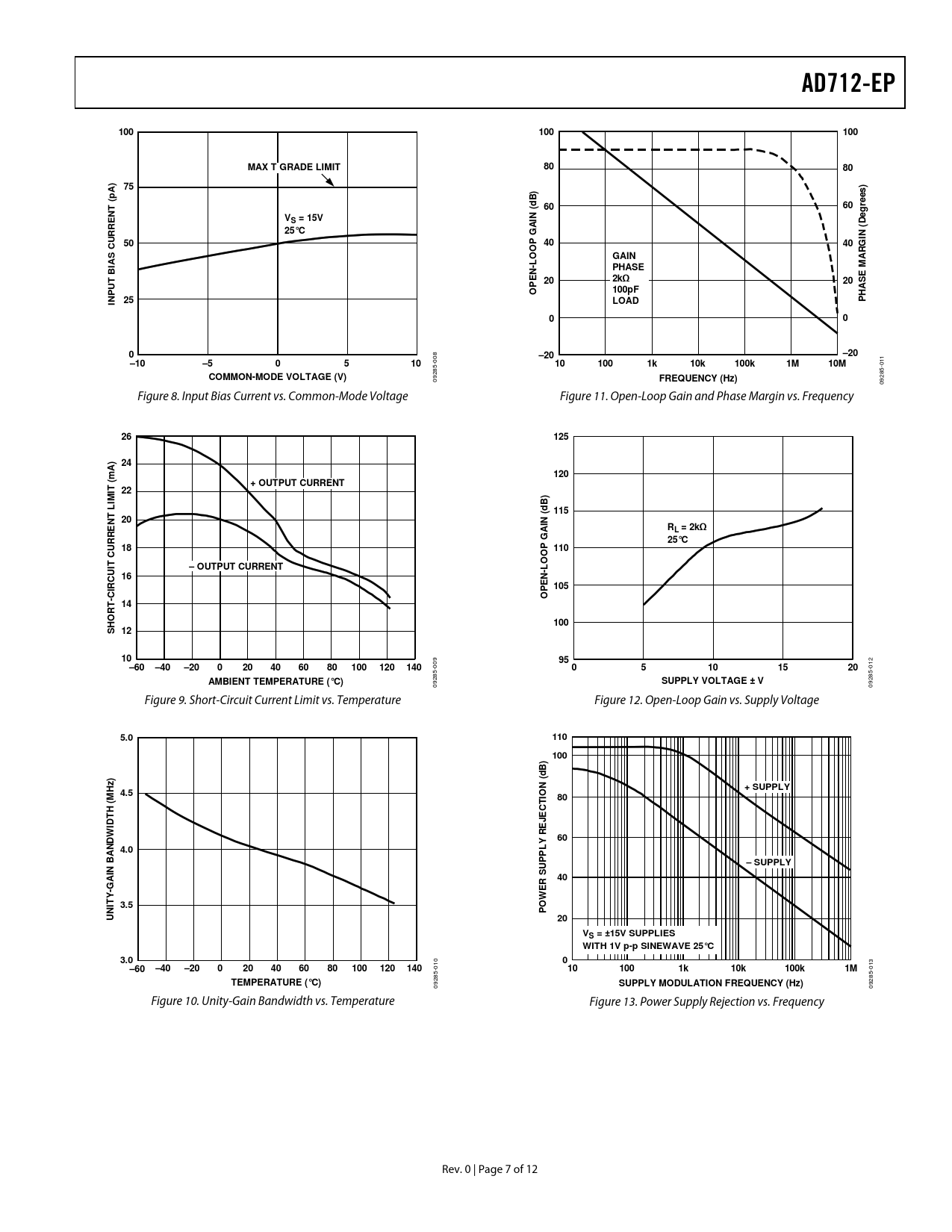 09 Figure 8. Input Bias Current vs. Common-Mode Voltage Figure 11. Open-Loop Gain and Phase Margin vs. Frequency