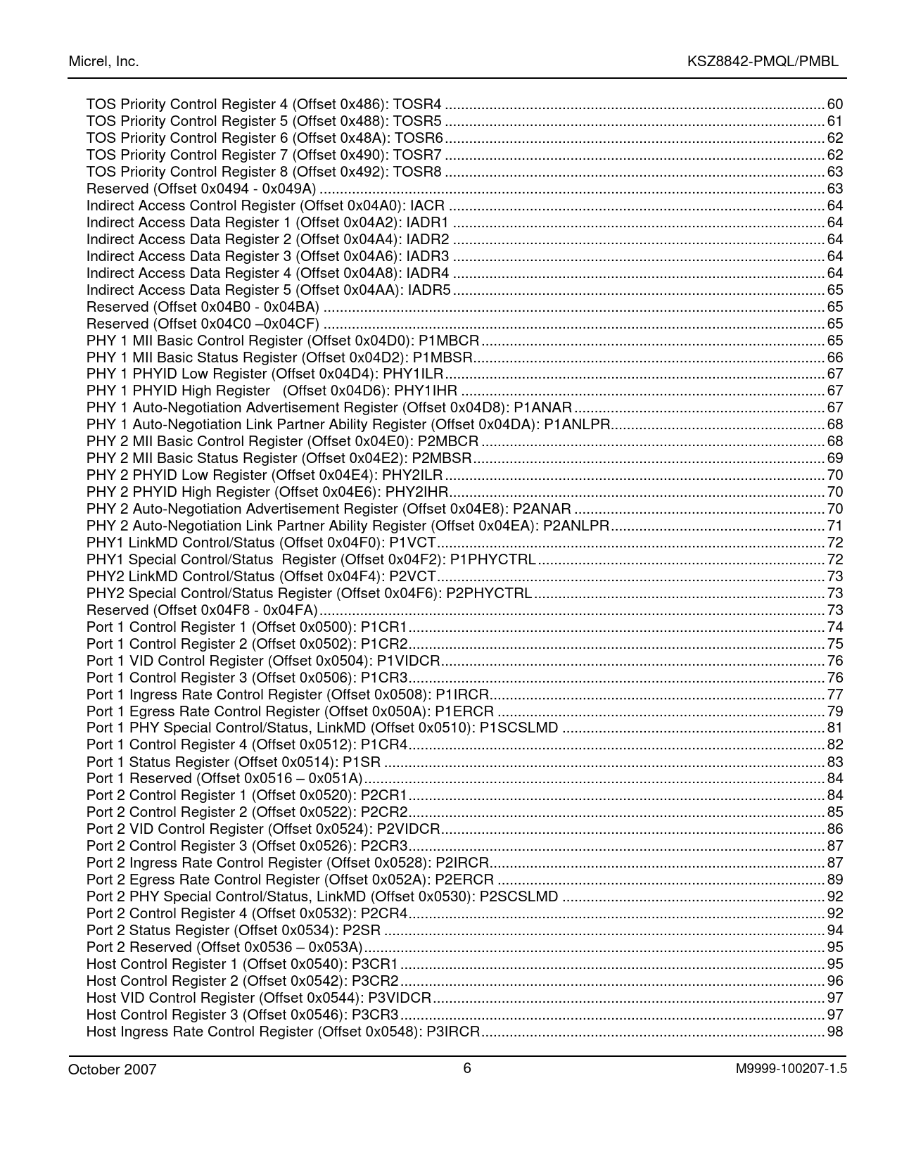 | Pages / Page | 119 / 6 — Micrel, Inc. KSZ8842-PMQL/PMBL TOS Priority Control Register 4 (Offset … |
