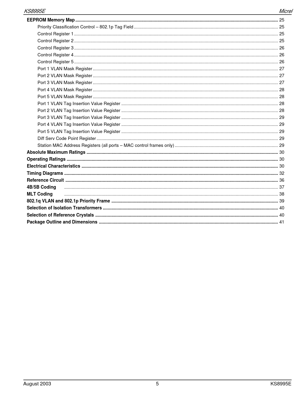 | Pages / Page | 41 / 5 — KS8995E Micrel EEPROM Memory Map . 25. Priority Classification Control – … |