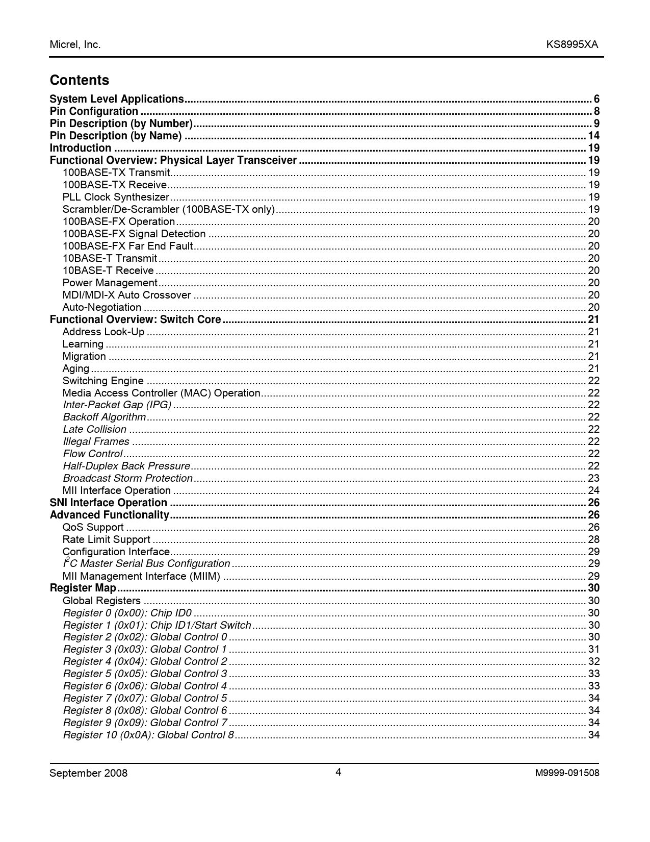 Micrel, Inc. KS8995XA Contents
