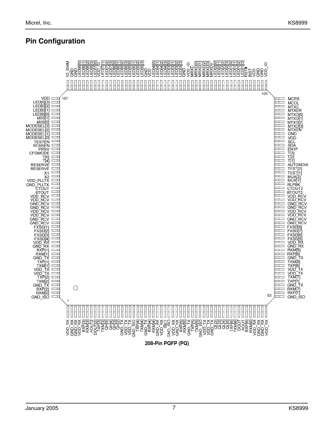 — Micrel, Inc. KS8999 Pin Configuration 208-Pin PQFP (PQ) January 2005 7 …