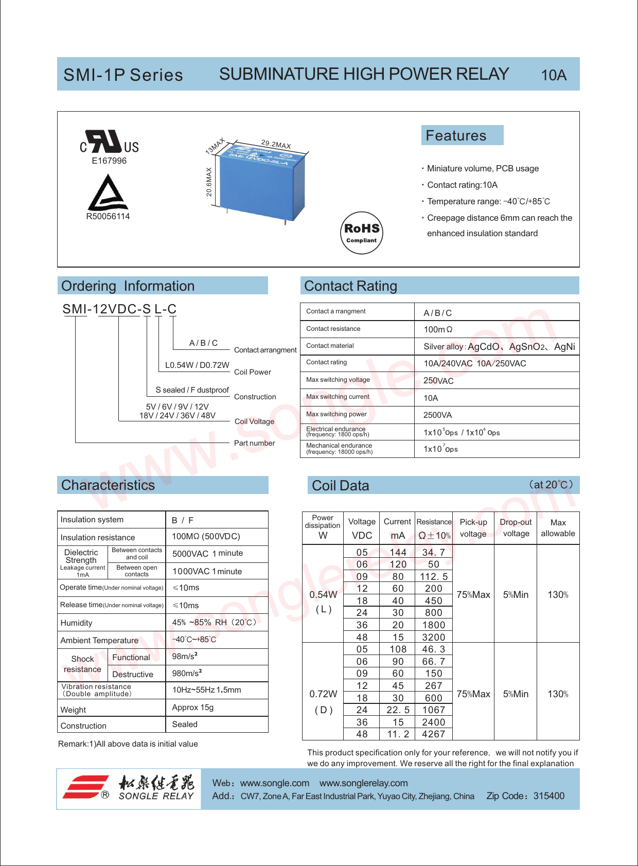 Datasheet SMI-1P Songle Relay