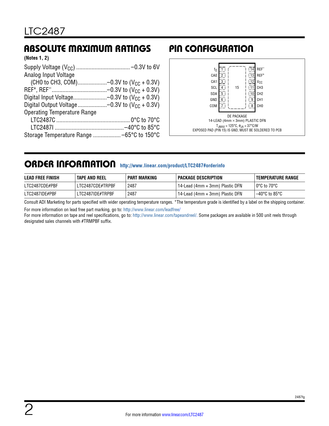 ABSOLUTE MAXIMUM RATINGS. PIN CONFIGURATION. (Notes 1, 2). ORDER INFORMATION http://www.linear.com/product/LTC2487#orderinfo