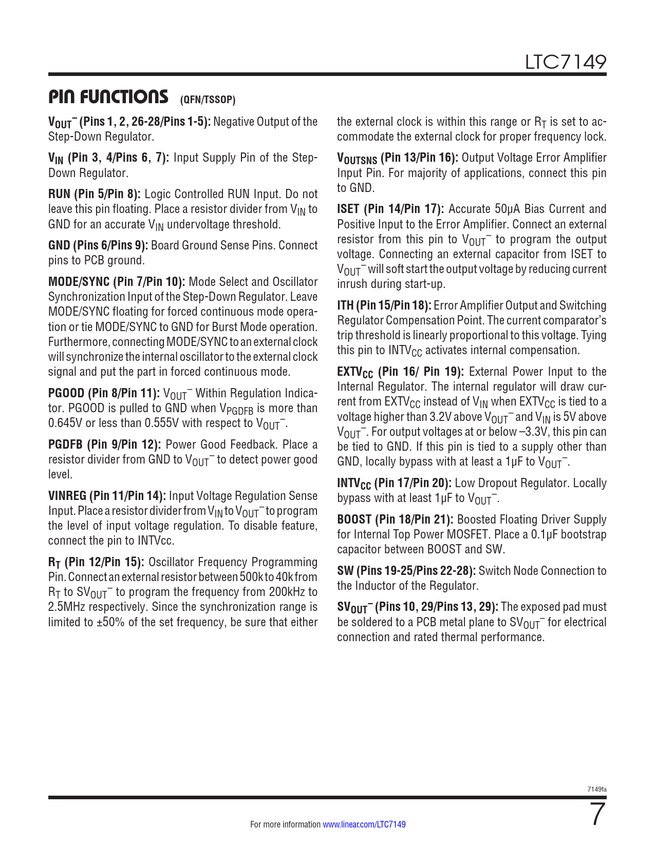 LTC7149 PIN FUNCTIONS