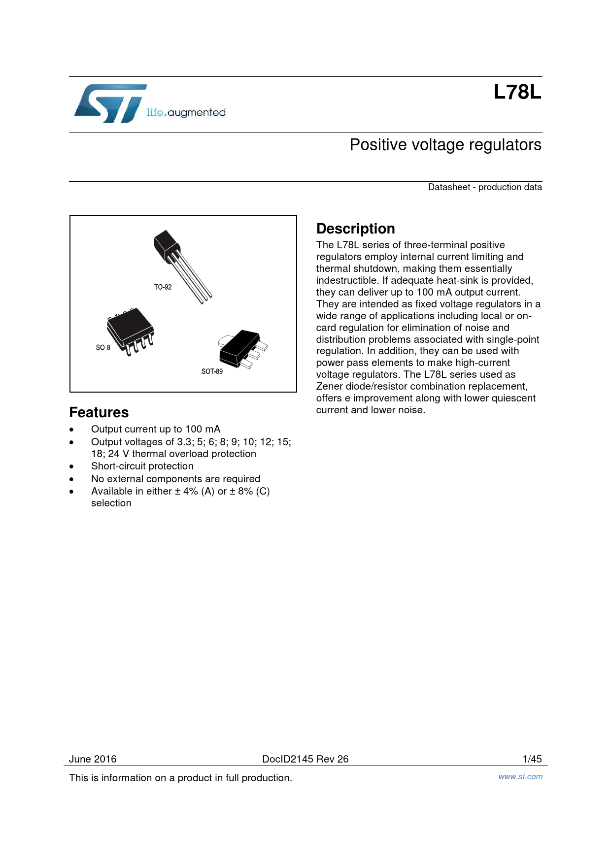 Datasheet L78L STMicroelectronics