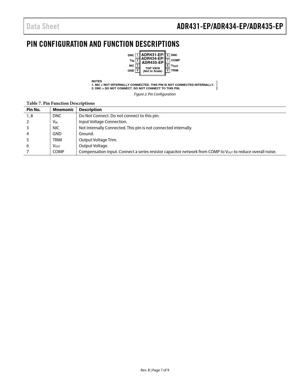 Pages / Page9 / 7 — Data Sheet. ADR431-EP/ADR434-EP/ADR435-EP. PIN CONFIGURATION AND FUNCTION …