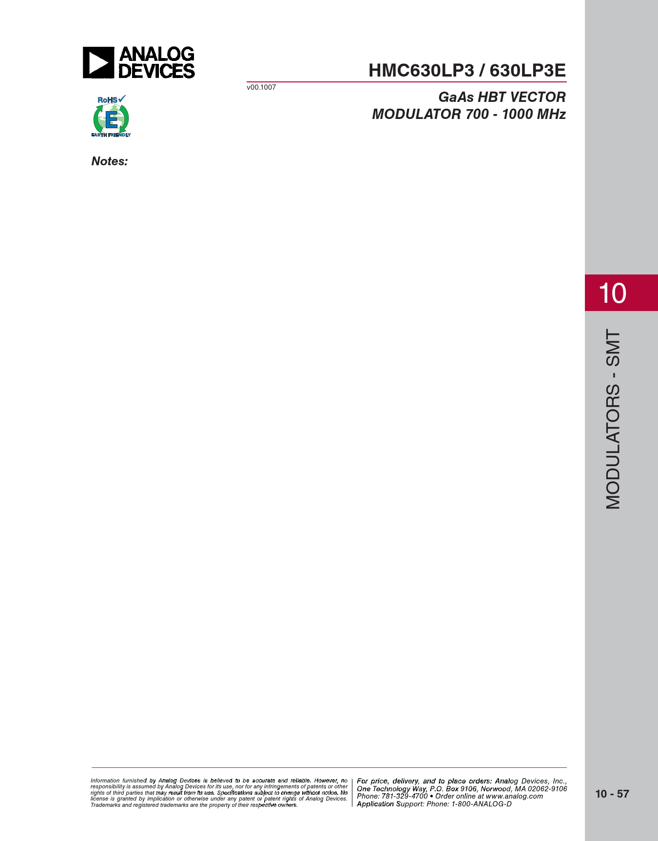 HMC630LP3 / 630LP3E. GaAs HBT VECTOR. MODULATOR 700 - 1000 MHz. Notes:. 10 - 57