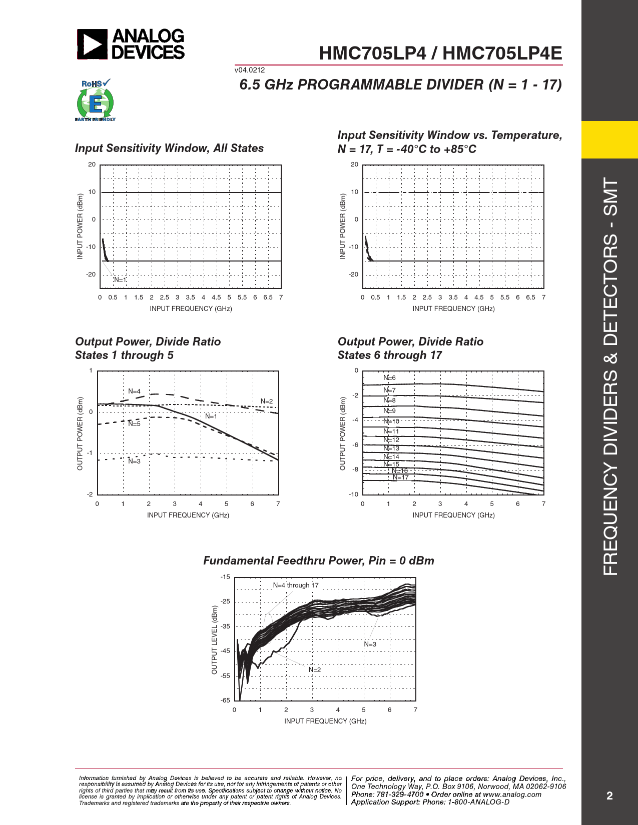 Pages / Page12 / 2 — HMC705LP4 / HMC705LP4E. 6.5 GHz PROGRAMMABLE DIVIDER (N = 1 - 17). Input …