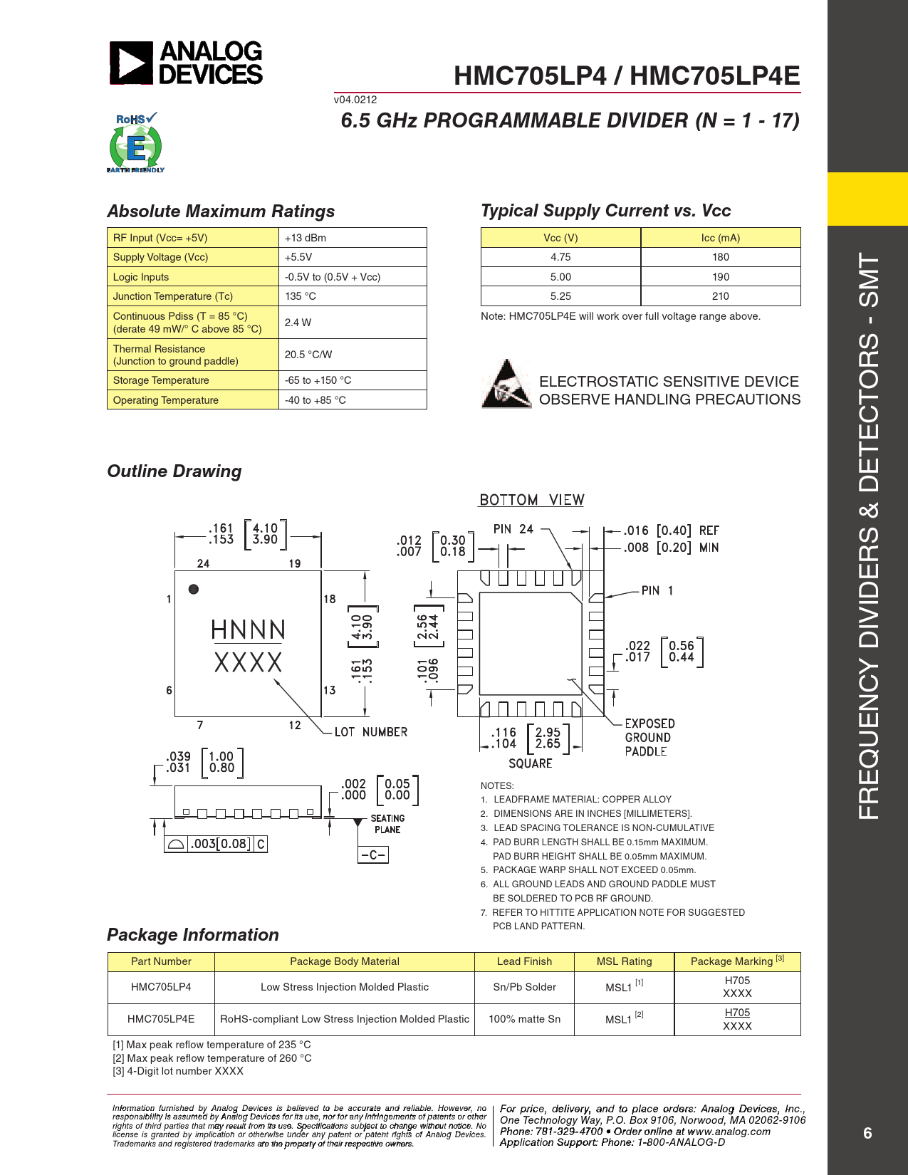 Datasheet HMC705LP4, HMC705LP4E (Analog Devices) - 6