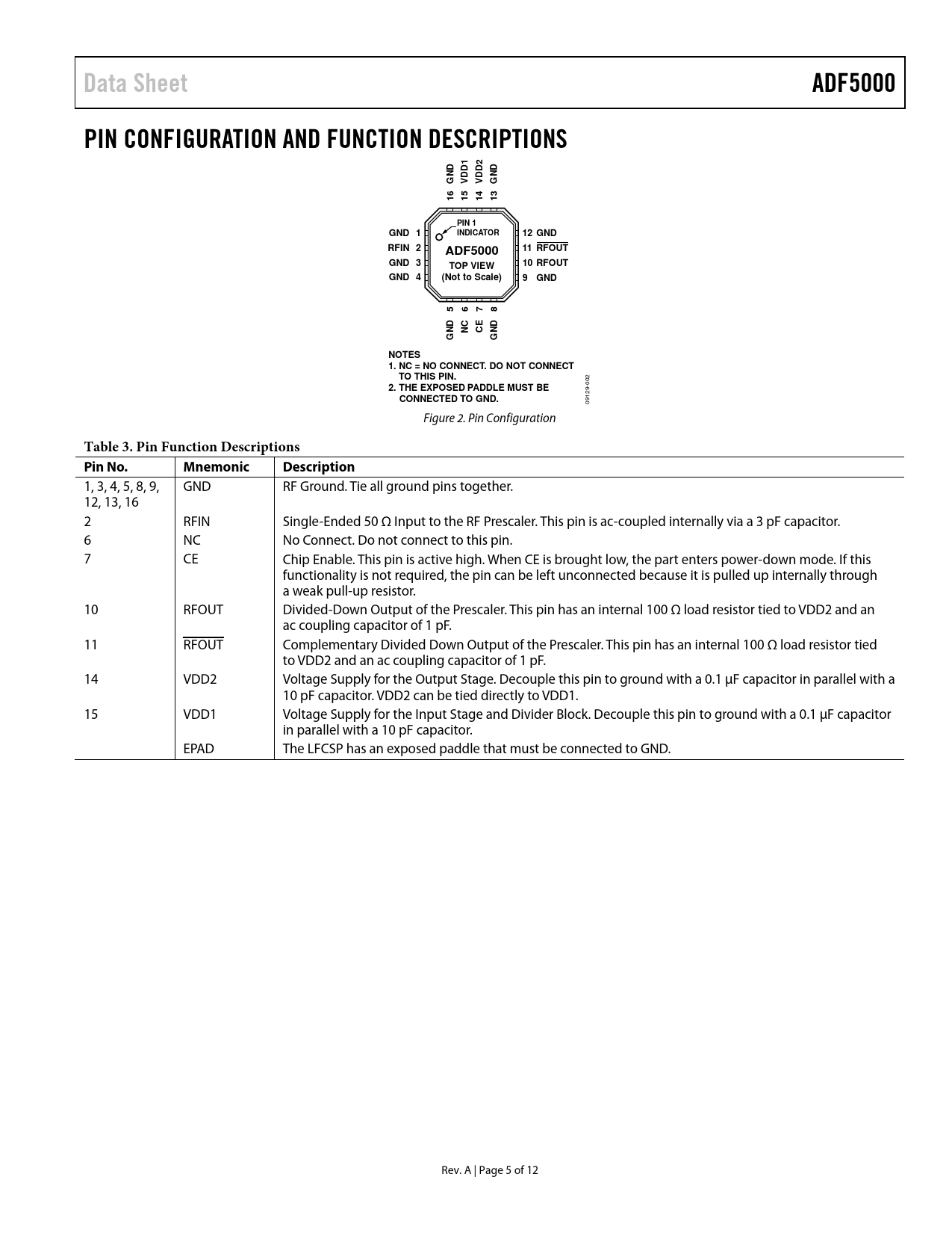 Pages / Page12 / 5 — Data Sheet. ADF5000. PIN CONFIGURATION AND FUNCTION DESCRIPTIONS. DD1. …