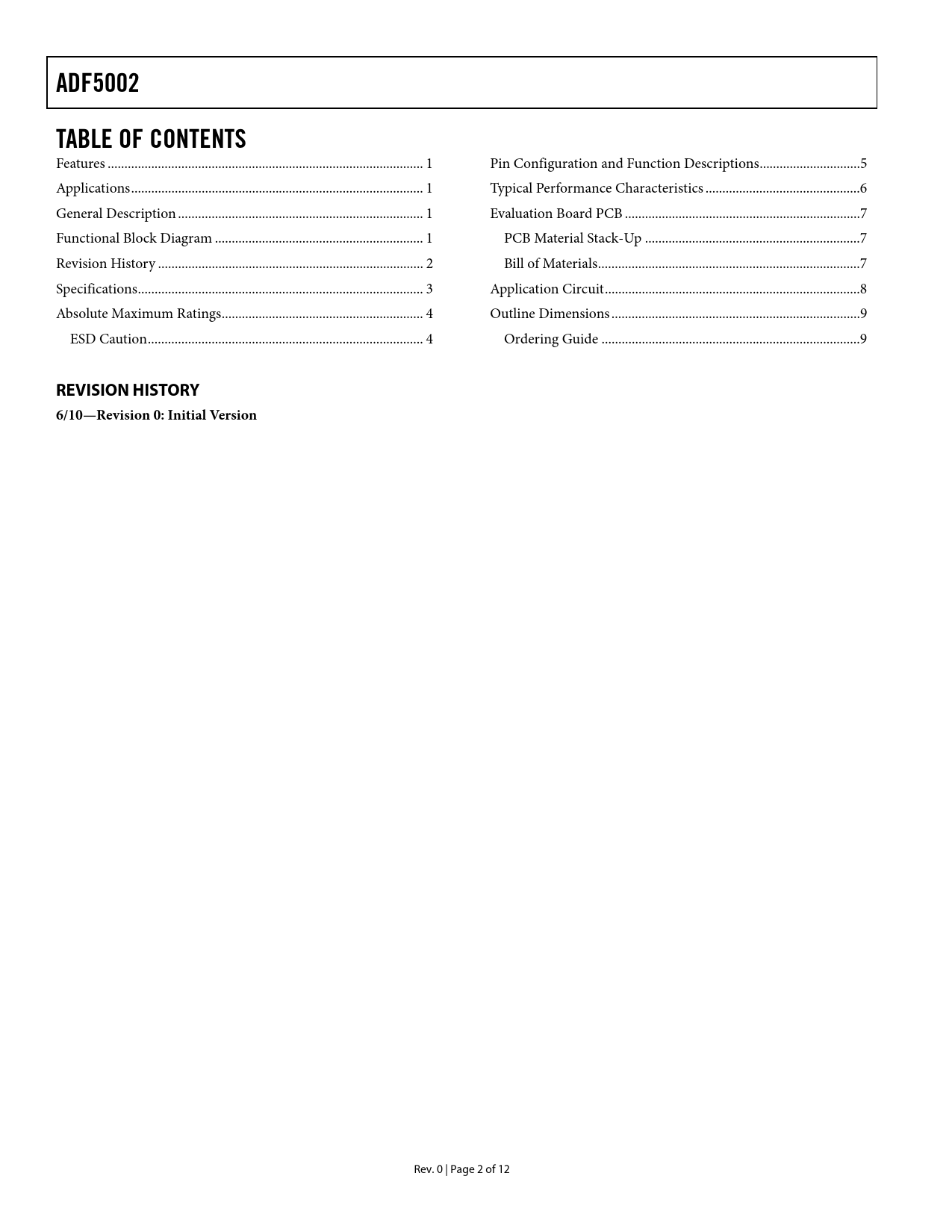 Pages / Page12 / 2 — ADF5002. TABLE OF CONTENTS. REVISION HISTORY. 6/10—Revision 0: Initial …