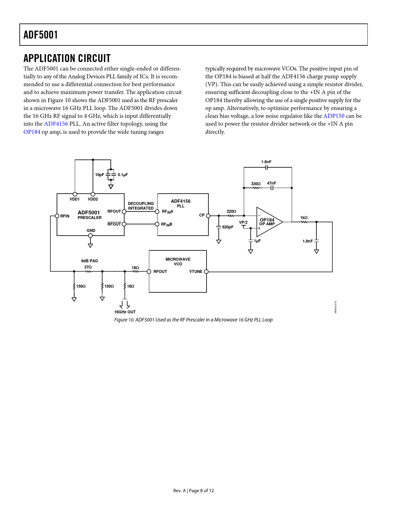 Pages / Page12 / 8 — ADF5001. APPLICATION CIRCUIT. 1.8nF. 10pF. 0.1µF. 330Ω. 47nF. VDD1. VDD2. …