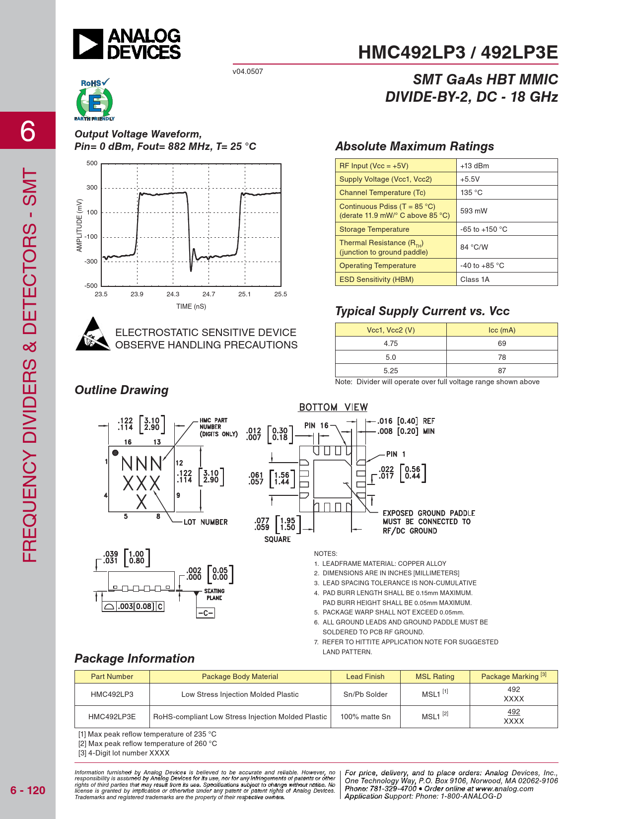Datasheet HMC492LP3, 492LP3E (Analog Devices) - 3