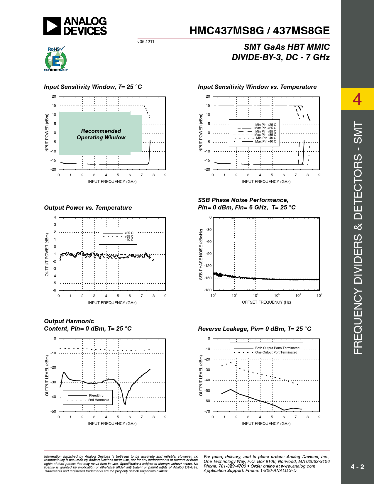HMC437MS8G / 437MS8GE. SMT GaAs HBT MMIC. DIVIDE-BY-3, DC - 7 GHz. Input Sensitivity Window, T= 25 °C