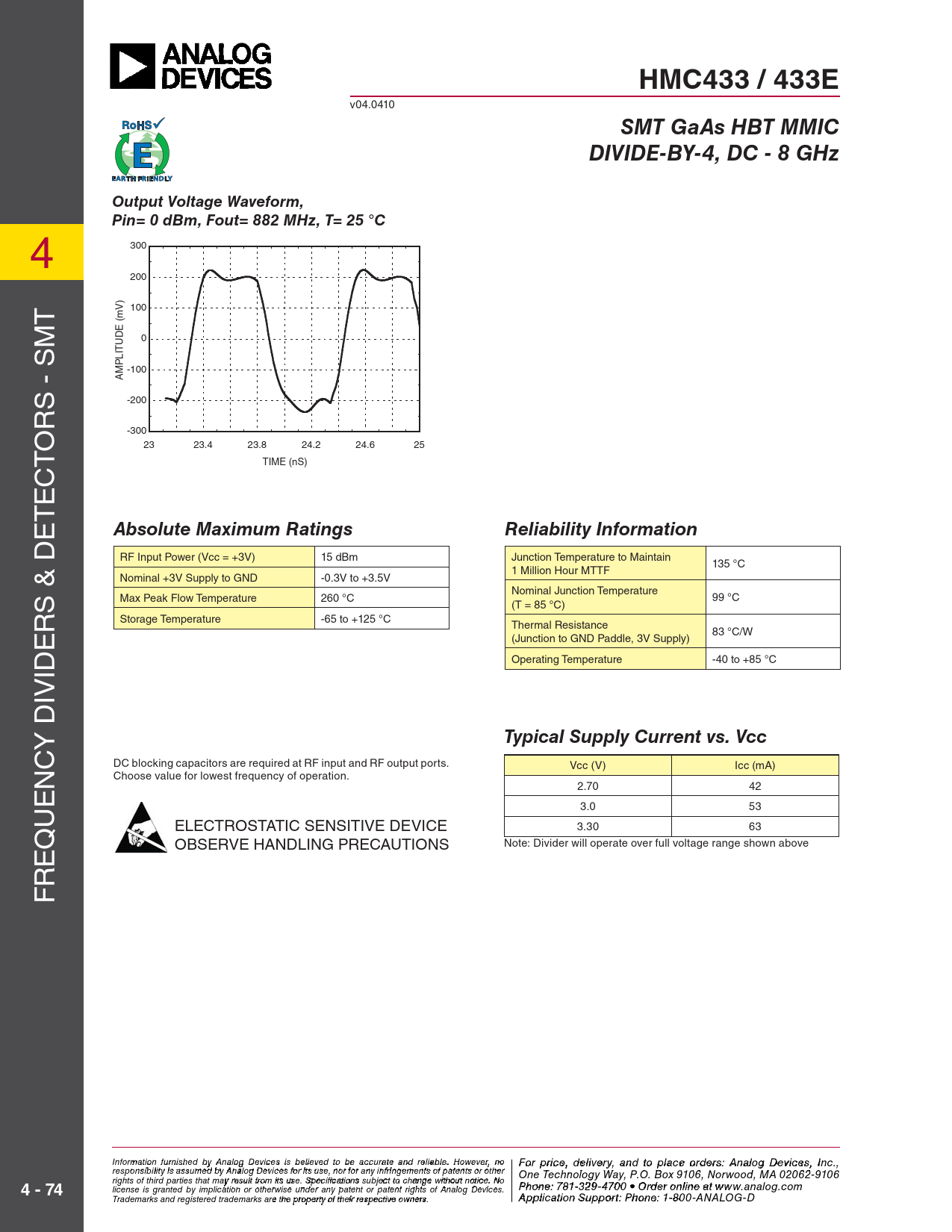 Datasheet HMC433, 433E (Analog Devices) - 3