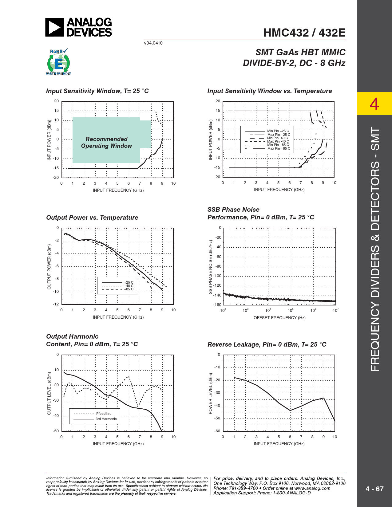 HMC432 / 432E. SMT GaAs HBT MMIC. DIVIDE-BY-2, DC - 8 GHz. Input Sensitivity Window, T= 25 °C