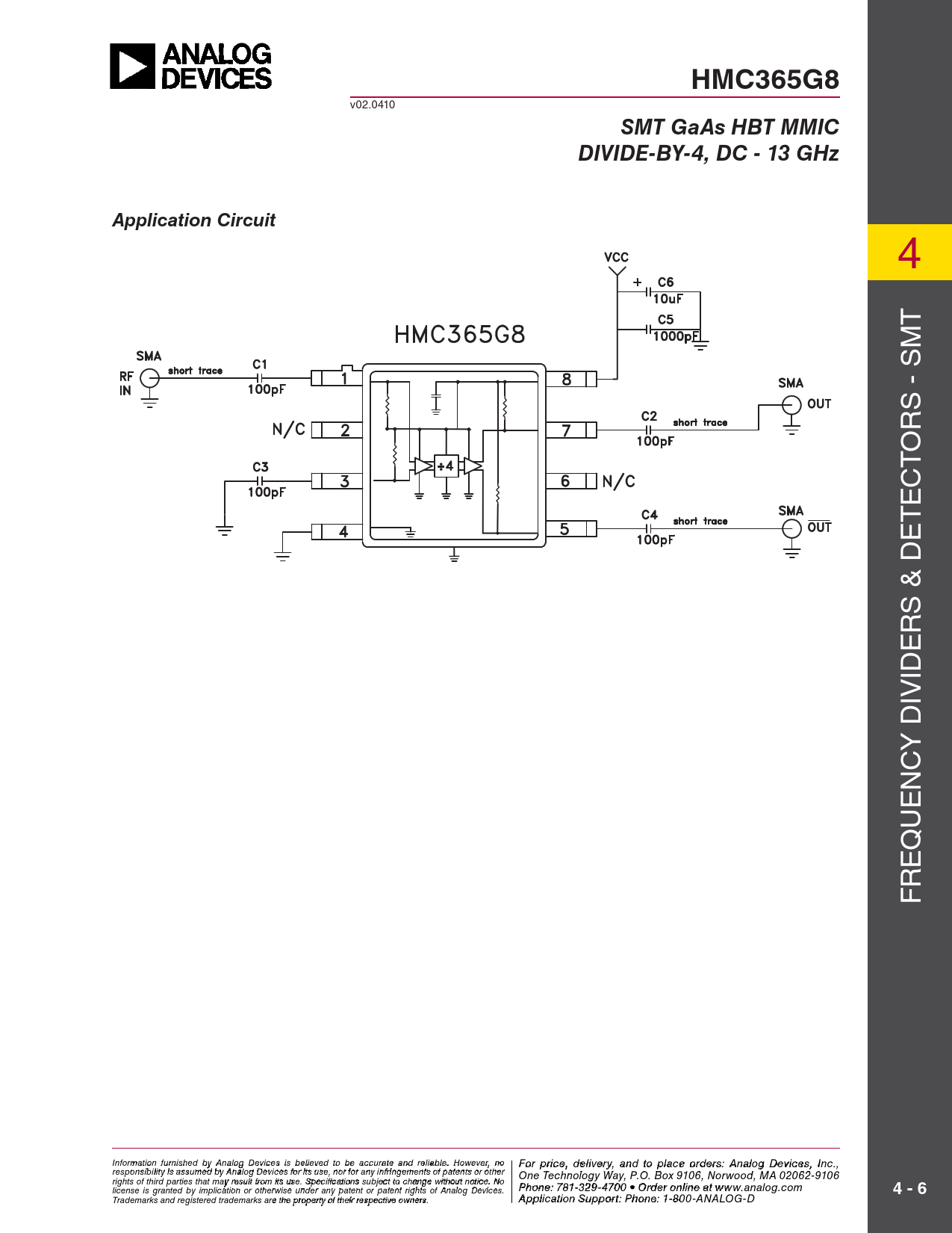 HMC365G8. SMT GaAs HBT MMIC. DIVIDE-BY-4, DC - 13 GHz. Application Circuit. 4 - 6