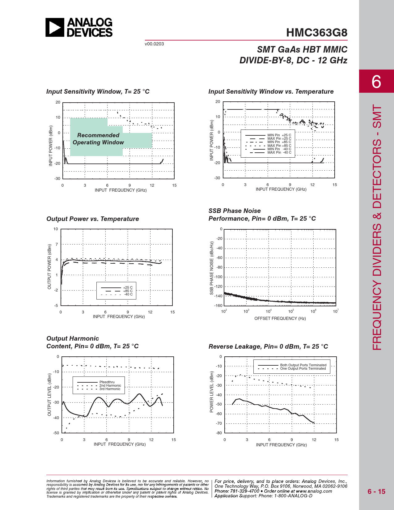 Pages / Page6 / 2 — HMC363G8. SMT GaAs HBT MMIC. DIVIDE-BY-8, DC - 12 GHz. Input Sensitivity …